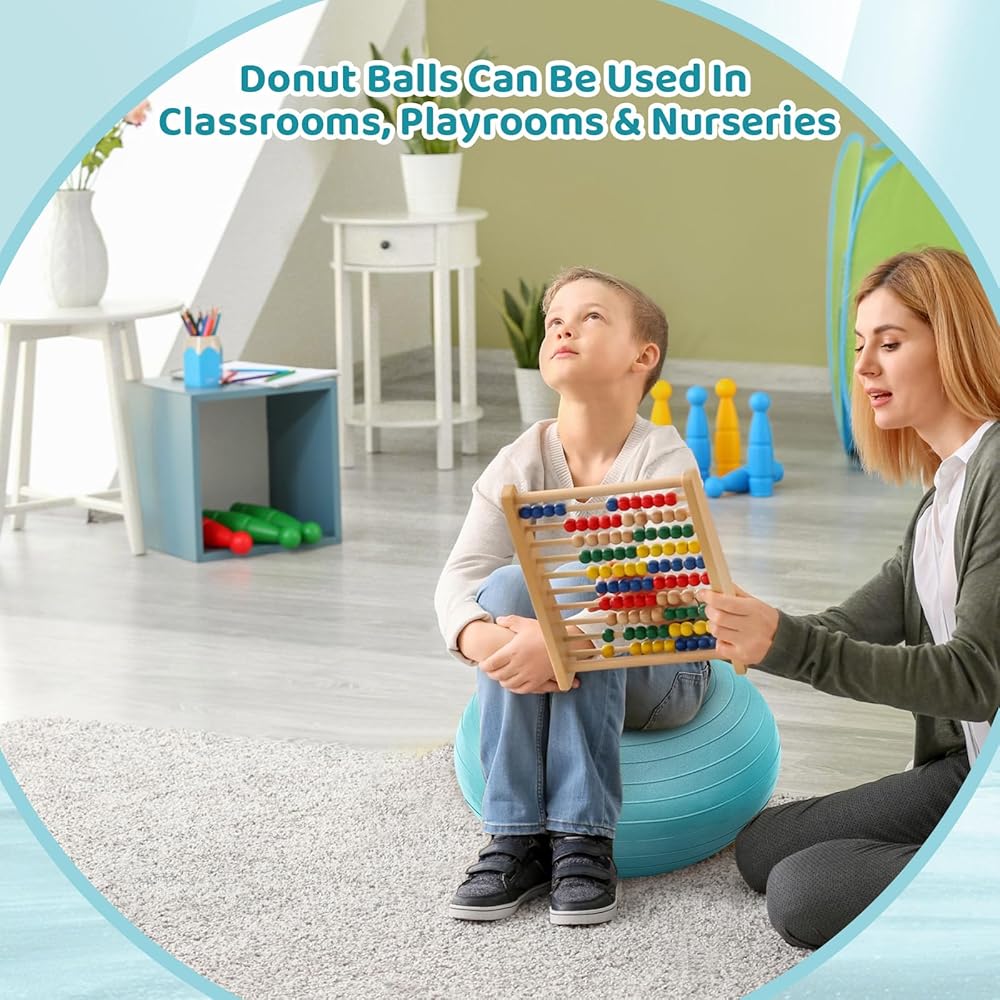 Lewtemi Flexible Seating for Classroom 20 Inch Inflatable Yoga Ball Chair Large Donut Exercise Ball Chair Cushion Seat with Inflator for Kid Student Sensory Balance Home Office