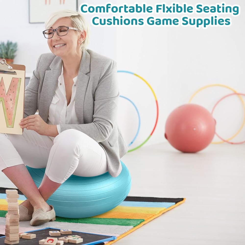 Replacement Seating: replace standard tables and chairs with yoga balls for classroom seating; Each set comes with a handheld pump for inflation; The stylish shape is ideal for classrooms and other places where children are active; It has no pointed corners, making it safe and practical, so children won't get bumped or bruise