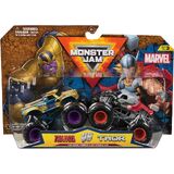 Step into the action-packed universe where Monster Jam roars and Marvel superheroes soar! The 1:64 scale die-cast Marvel Monster Jam truck series isn't just a collection. It's a high-octane homage to the Marvel Universe. These monster trucks, emblazoned with the symbols and colors of icons like Thor, Captain America, Iron Man, Black Panther, and Spider-Man toys, bring home the spectacle of superpowers and stadium stunts. Boasting authentic BKT Tires and hero-themed body, these trucks capture the excitement of Monster Jam events and the essence of the superheroes they represent. The super hero collection allows children to recreate stunts and breathtaking jumps, bringing the Monster Jam action home. These toys are designed for both play and display, igniting imaginations and enabling storytelling with each spin of the wheels. Ideal for young fans, the Marvel Monster Jam trucks are a catalysts for creativity, heroism, and adventure, allowing kids to craft their own narratives of courage and resilience. Rev up those engines and prepare for a playtime that's nothing short of epic - where heroes meet horsepower, and the Monster Jam action never ends!