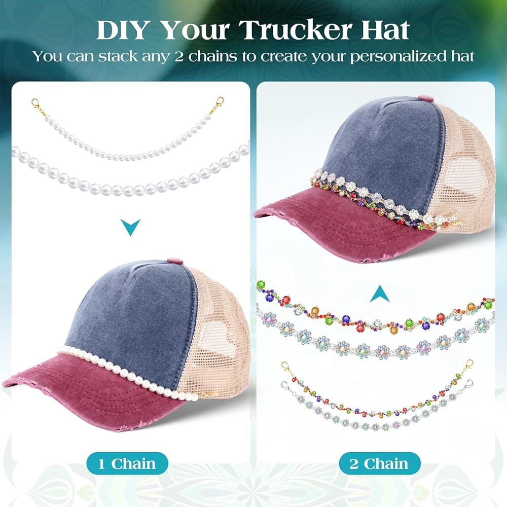 Versatile for Various Occasions: Crafted from premium materials such as pearls, turquoise, metal, alloy, and more, our trucker hat chains come in vibrant colors and offer a wide range of uses. Whether you're heading to a party, bar, beach, or just running daily errands, these chains add a touch of personal style to your look