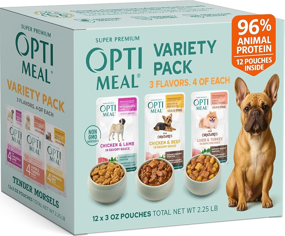 Optimeal Wet Dog Food Small Breed Variety Pack - Grain Free Recipe High Protein Tender Morsels in Aspic Made with Natural Ingredients for Adult Dogs, Premium Nutrition Pouches - 3oz Pouch (Pack of 12)