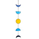 Celestial Blue Stained Glass Sun and Moon Window Hanging Handmade Stained Glass Suncatcher Boho Home Decor Sun Catcher for Indoor Window Panel Mystic Gift for Women