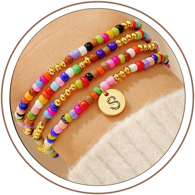 MATERIAL: Cute beaded bracelet is made of colorful dainty beads, 18K gold plated initial charm, nickel and lead free, sturdy and durable. Color will last a long time without tarnish. No harm to skin, Hypoallergenic
