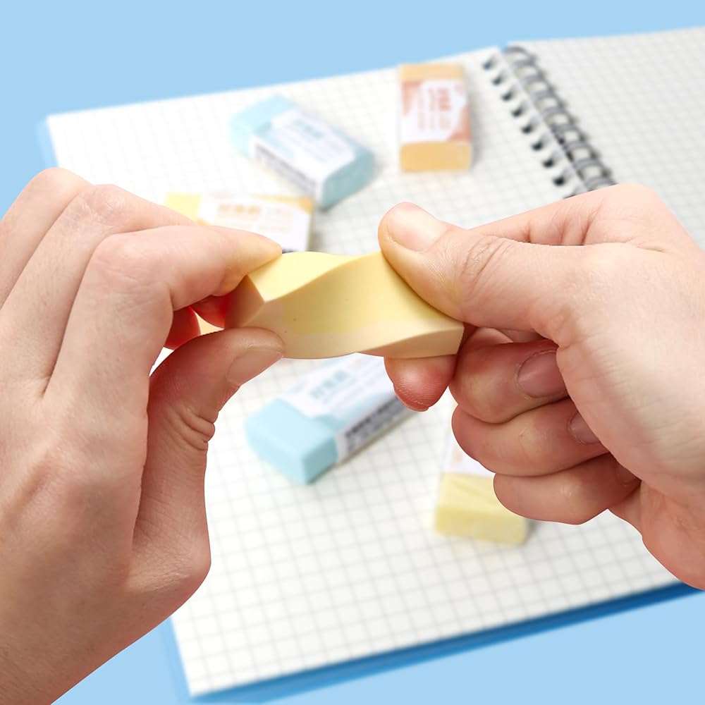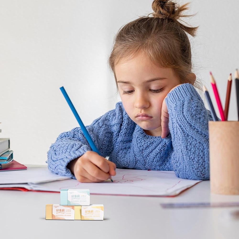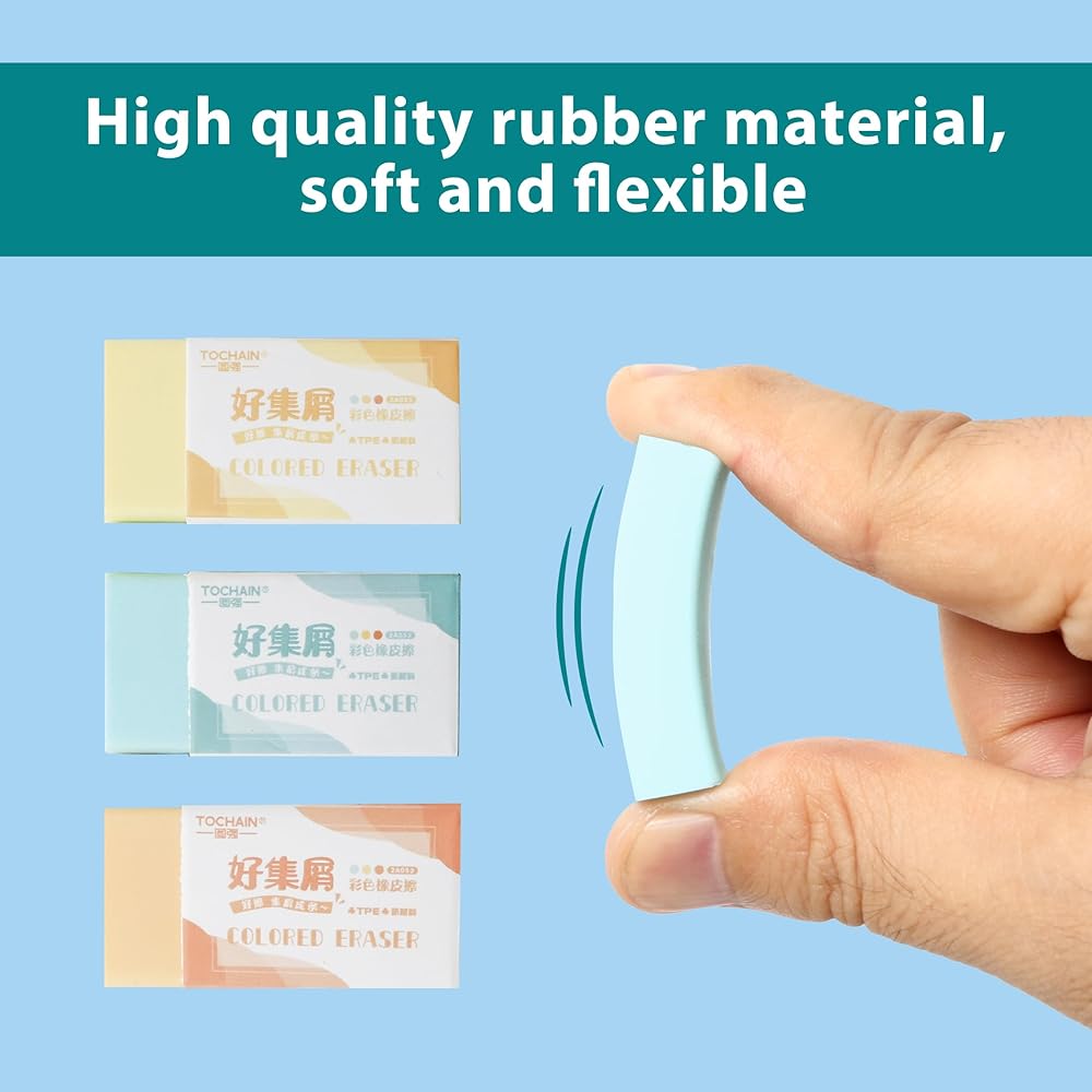 【Safe and Eco-Friendly Materials】: Made from environmentally friendly and non-toxic materials, pencil eraser is harmless to both humans and the environment, providing peace of mind for users, especially parents and teachers. The eraser is flexible and resilient, resistant to breaking during use, and leaves the paper surface clean and tidy without any residue after erasing.