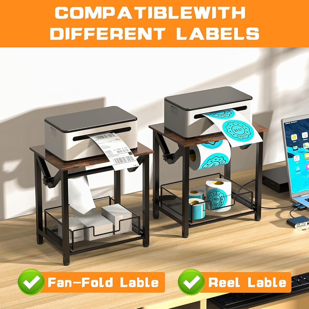 Durable and Sturdy Materials:Specially customized for label dispenser, using high-quality solid wood panels and high-strength carbon steel frames,this thermal printer stand can support up to 18lb. The sturdy design and the anti-slip bottom pad ensure the holder stays firmly in place, providing long-lasting durability and stability.