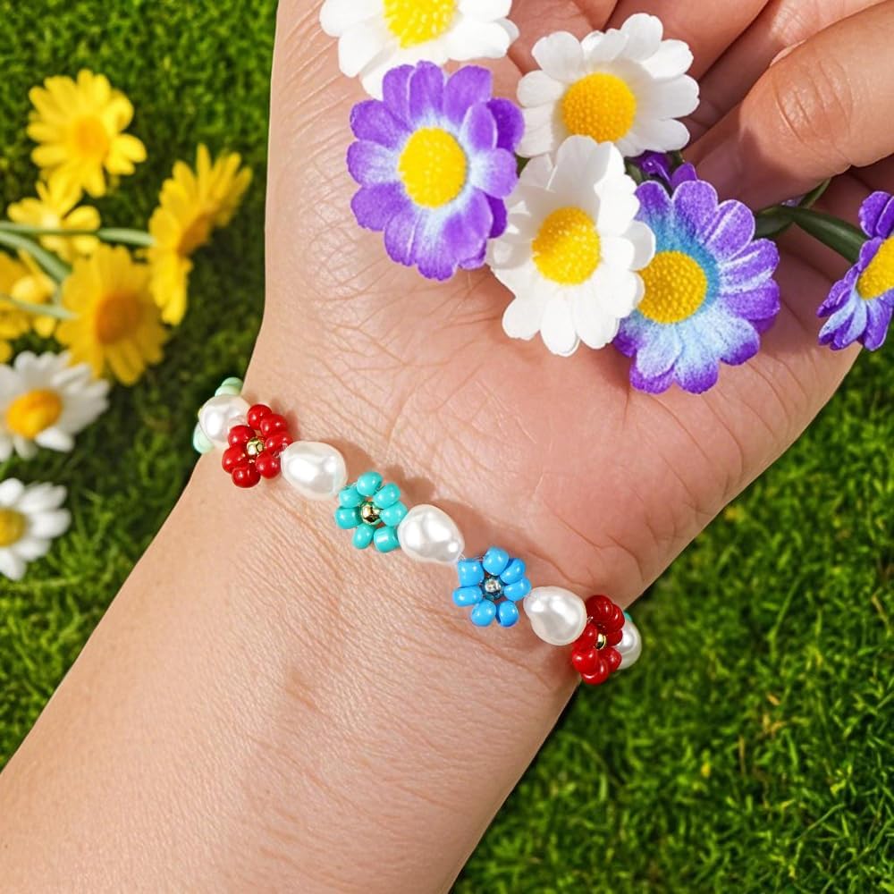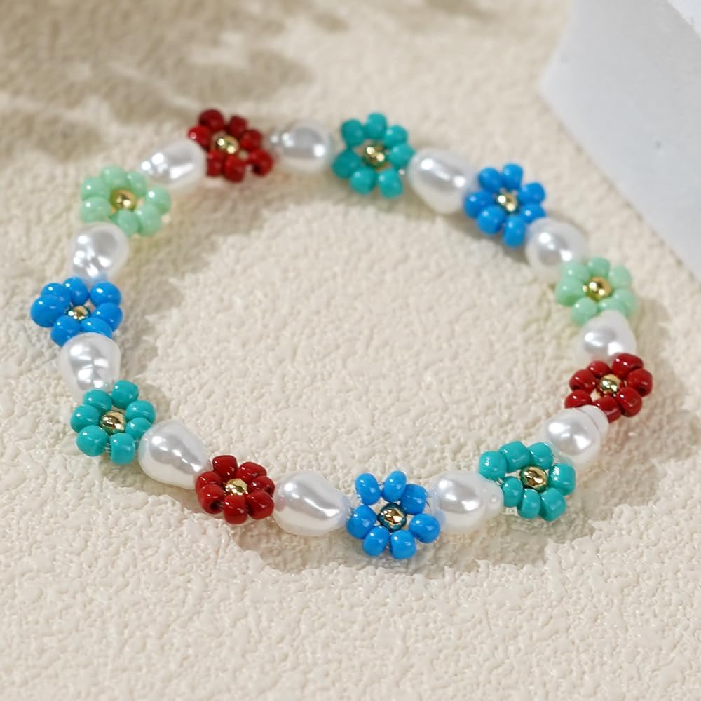 Material:The bracelet is made up of irregular pearls and beaded flowers. It is available in two vibrant colors, full of energy, and is a must - have item for the summer beach.