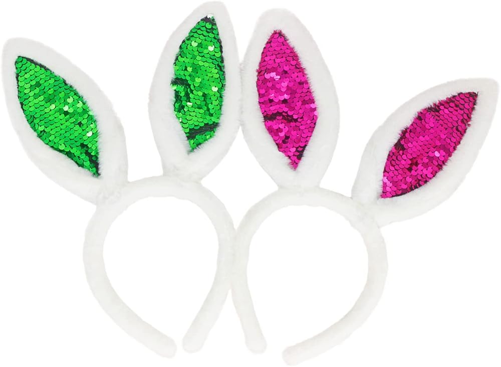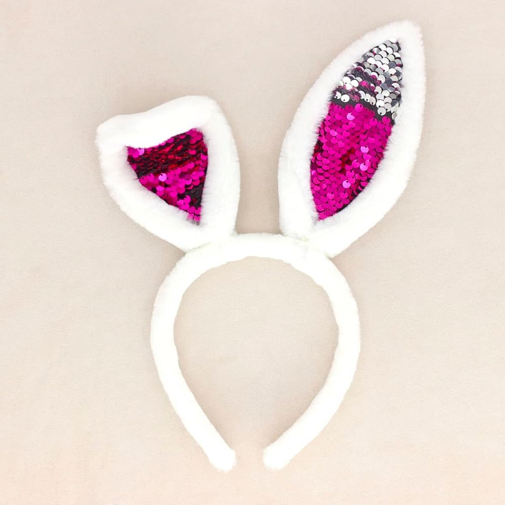 【Package Includes】: 2 pieces reversible sequin bunny ear hairbands in total,Apply to different dress up activities, such fun. And your princess will love it.