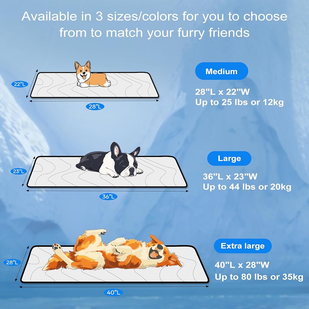 VERSATILE & LIGHTWEIGHT & PORTABLE: Cozyide pet cooling pads come in 3 sizes/3 colors for you to choose from to match your furry friends. They are easy to pack up, just take them anywhere your pets can enjoy ultimate comfort