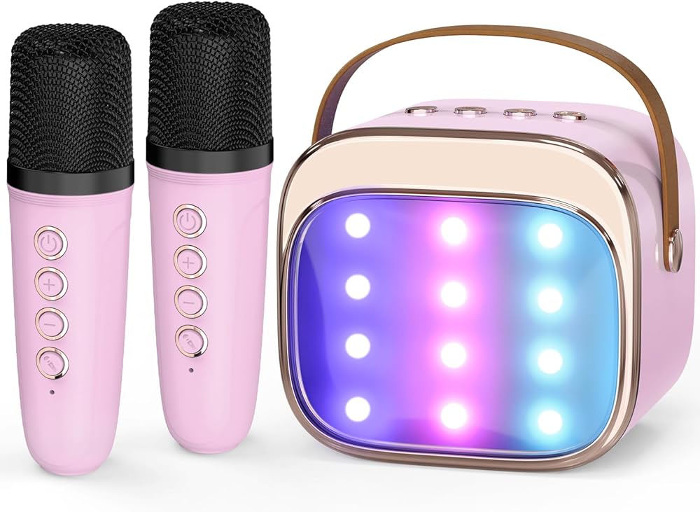 FLUESTON Mini Karaoke Machine for Kids Adults, Portable Bluetooth Speaker with 2 Wireless Microphones, Toys for Girls Ages 3, 4, 5, 6, 7, 8, 9,10,11+ Years Old, Birthday Easter Basket Stuffer for Kids