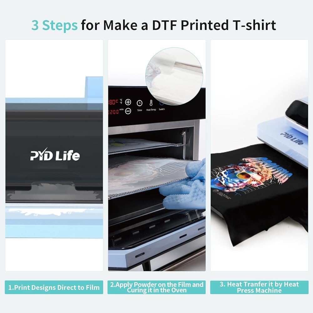 Upgrade Fast Printing: The DTF printer machine with upgrade fast printing.Three resolutions to choose from:720*900dpi(4pass),Print Speed:4㎡/H,720*1080dpi(6pass),Print Speed:2㎡/H,720*1400dpi(8pass),Print Speed: 1.2㎡/H.It'll be a nice choice for your T-shirts Caps Bags DIY Craft business.
