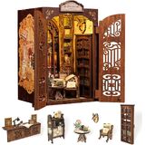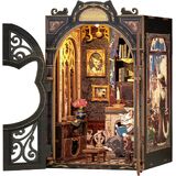 [EASY TO FOLLOW] The book nook kit packaging Box includes everything you need: detailed and simple instructions, accessory board, battery box, dust-proof sheet, light bulb, wiring. You only need to prepare 2 pieces of AAA batteries and little glue is involved.