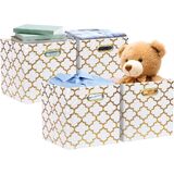 The lastest style Collapsible Storage Bin in 2018. Unique oval metal handles for easy slide in and pull out of shelves or closet,eyecatching gold painted pattern will win many compliments