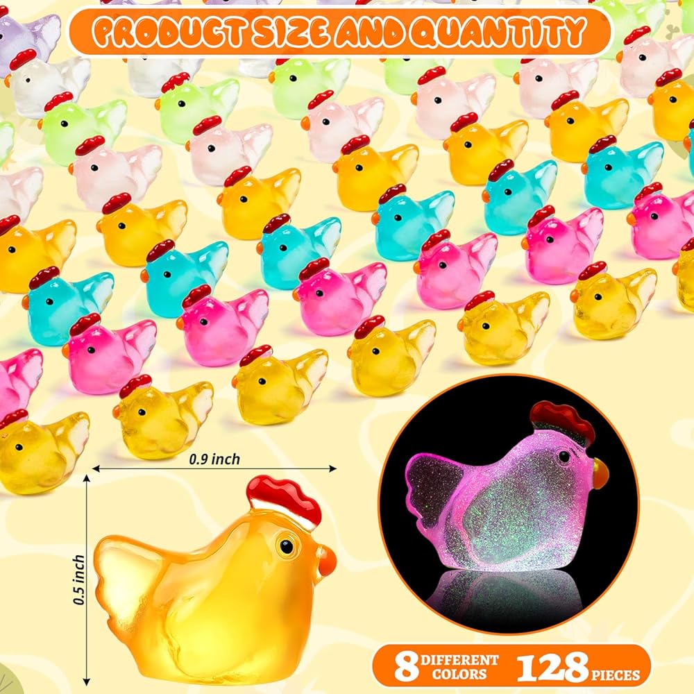 MULTIFUNCTIONAL MINI CHICKEN: Our miniature luminous resin hens can be used to decorate your doll's home, miniature garden landscape, potted plants, fish tanks, home, and outdoor decorations. It is the perfect decoration for chicken themed parties, showcasing different charm during the day and night