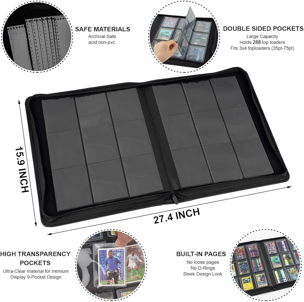 【 Holds Up to 288 Cards】With a generous capacity of 288 cards, this binder is perfect for serious collectors who need ample space to store and protect their valuable card collections.