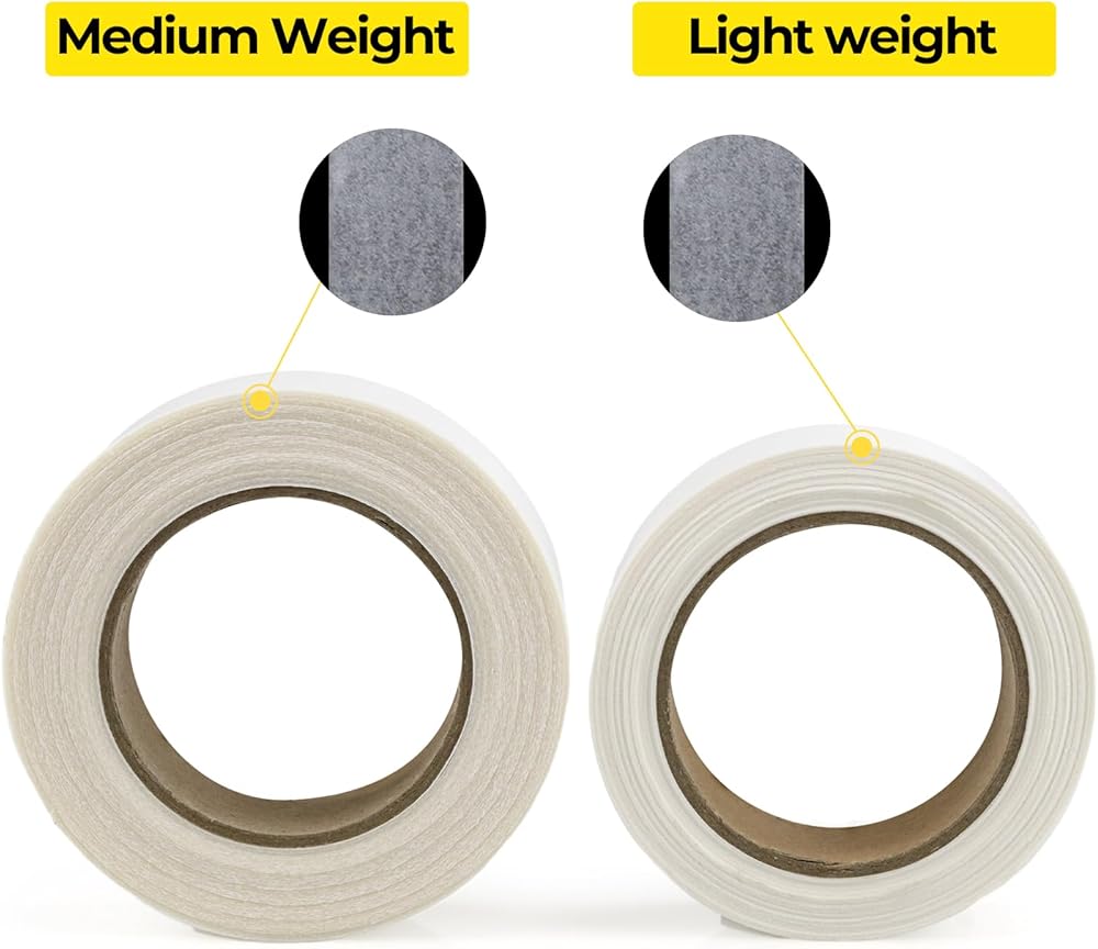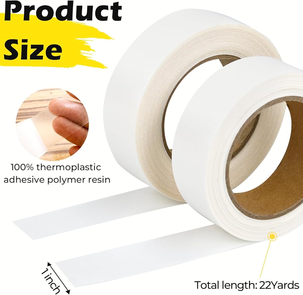 【Iron On Hemming Tape】The hemming tape is 2 rolls of edge tape 1 inch wide and 22 yards in total. One roll is light width and the other roll is medium width. You can choose the thickness of the tape according to the fabric. The two widths allow a wider range of materials to be used. Heat-activated double-sided adhesive. Easily sew garments without sewing.