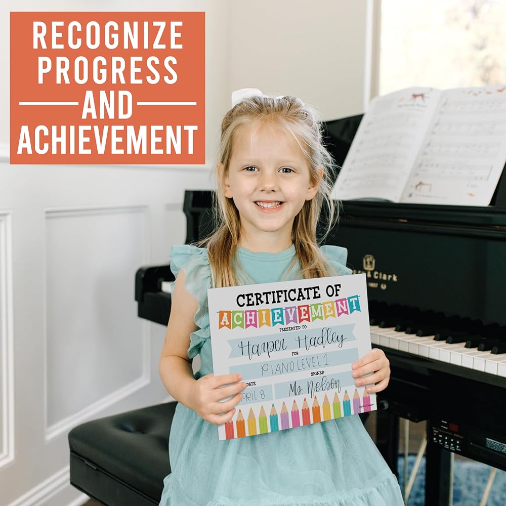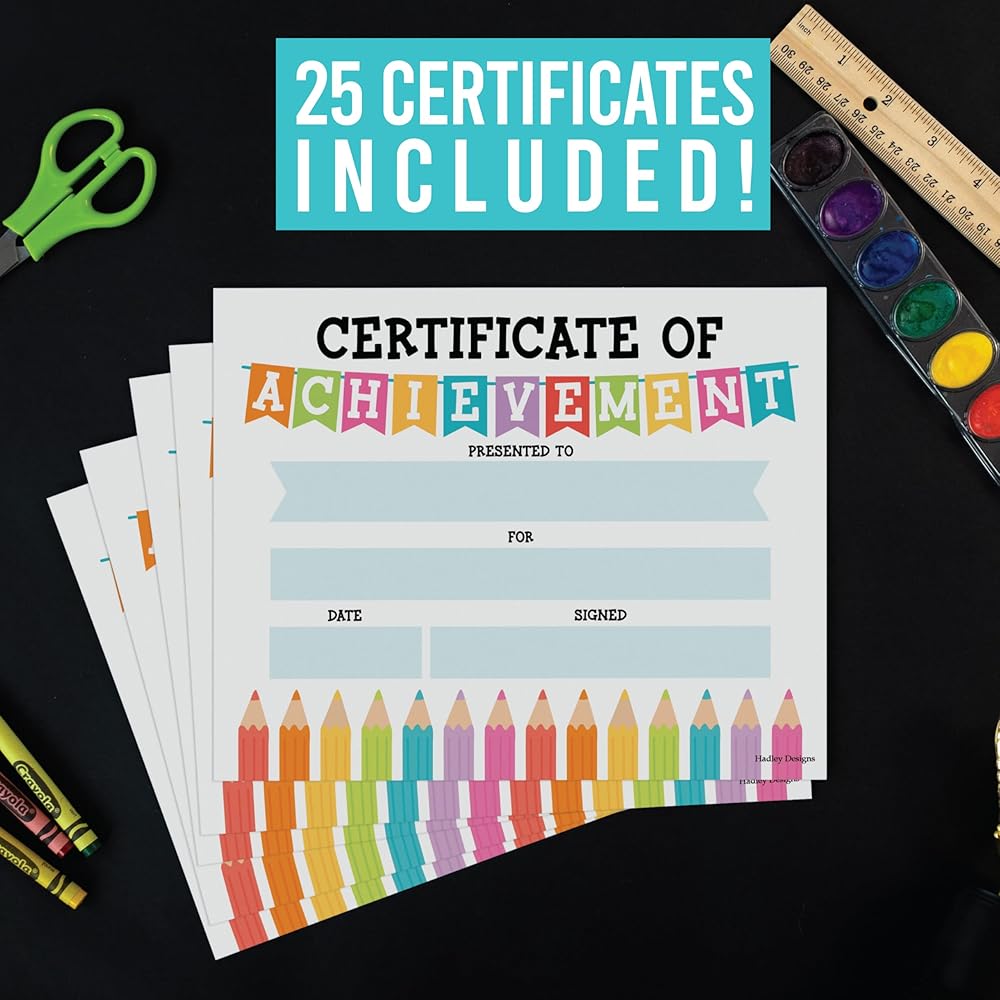 Recognize Progress And Achievement; You'll receive 25 8x10" award certificates kids love, so you'll have enough awards and certificates for an entire classroom; This certificate of recognition shows students that hard work pays off