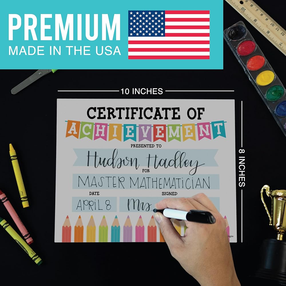 If You Want To Celebrate Your Students' Success; Then you need these award certificates for kids; While other certificates of achievement for kids are made overseas, our certificate of achievement awards for kids are USA made with thick cardstock