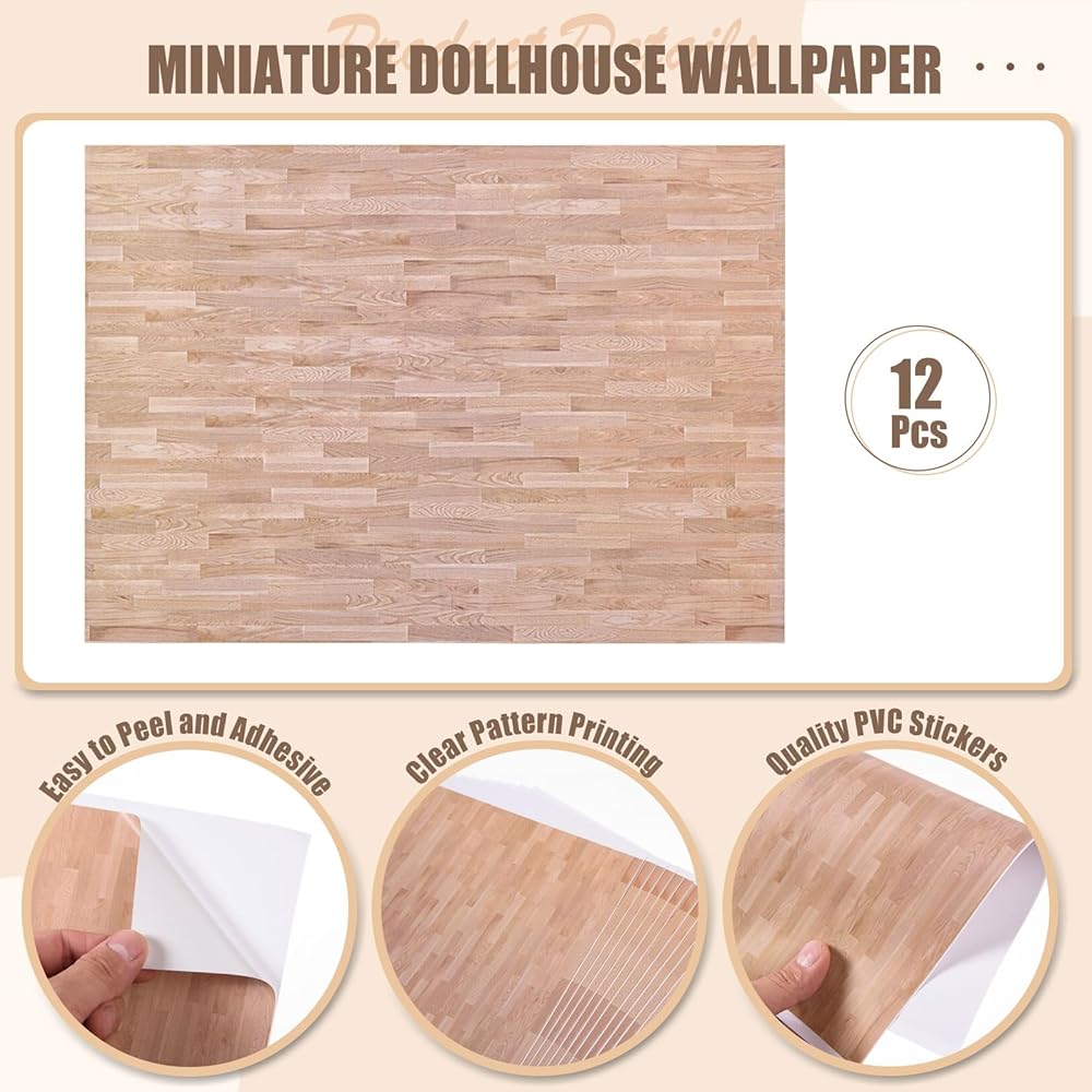 The dollhouse wallpaper is designed with mini-appropriate proportions and intricate textures, the dollhouse wallpaper brings a sense of realism and sophistication to your dollhouse,which helps you to make a realistic dollhouse