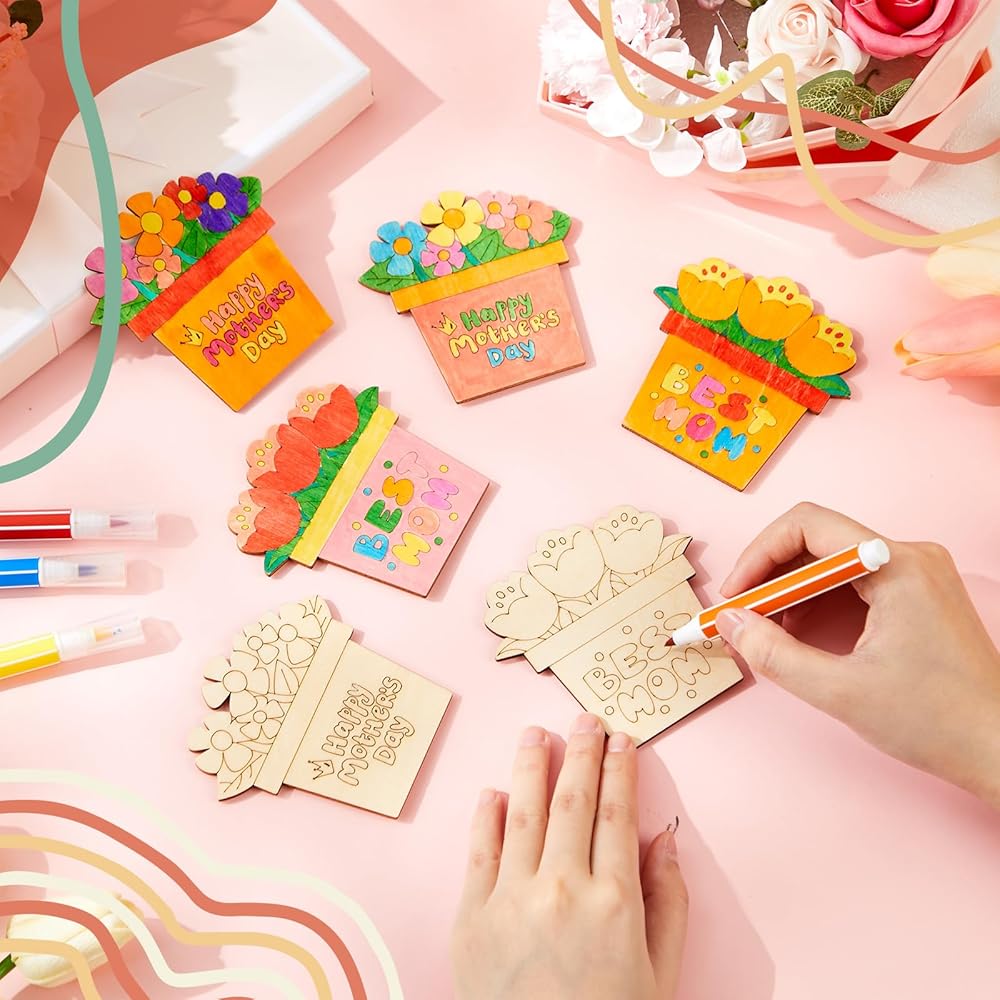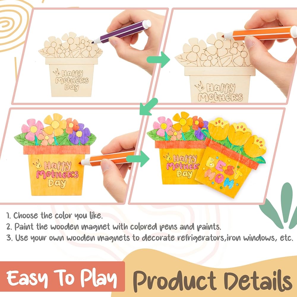 The Mother's Day wooden magnets are blank, you can use the pens to make DIY and unleash your creativity.