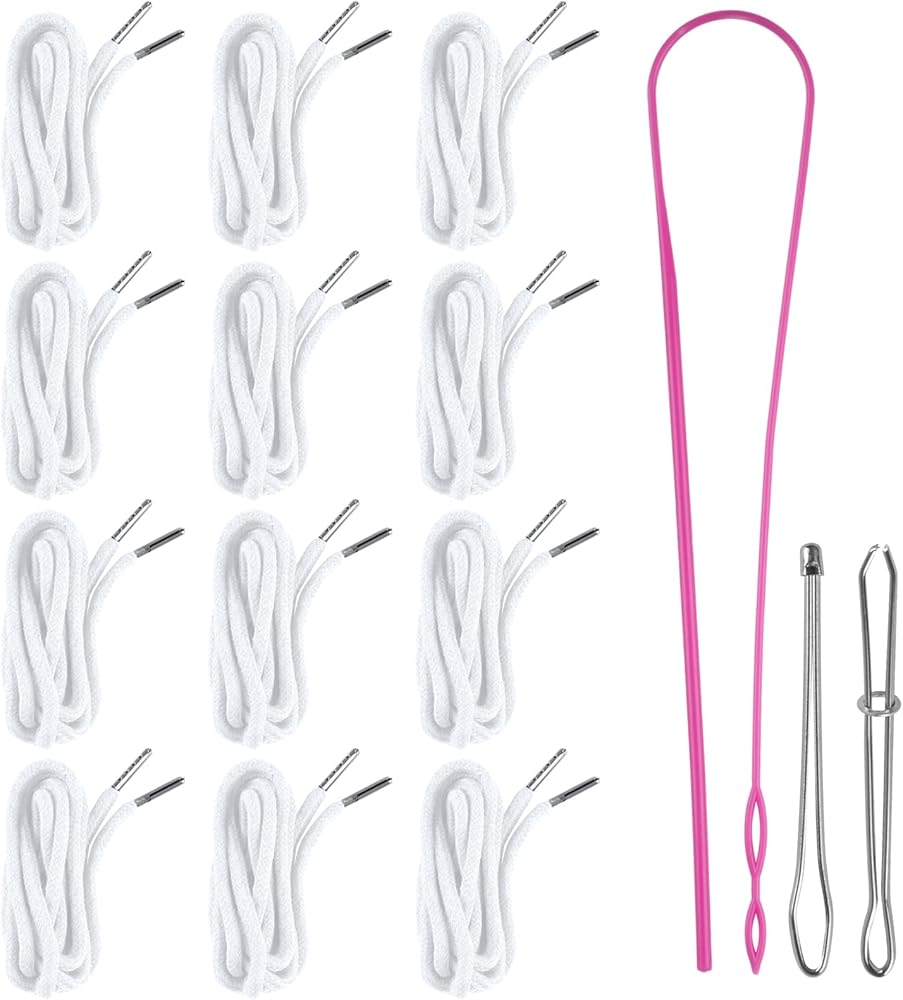 Drawstring Cord Set: Includes 12 replacement drawstrings (6 black and 6 white), each measuring 53 inches in length; comes with 3 easy-to-use threaders for quick and hassle-free drawstring replacement