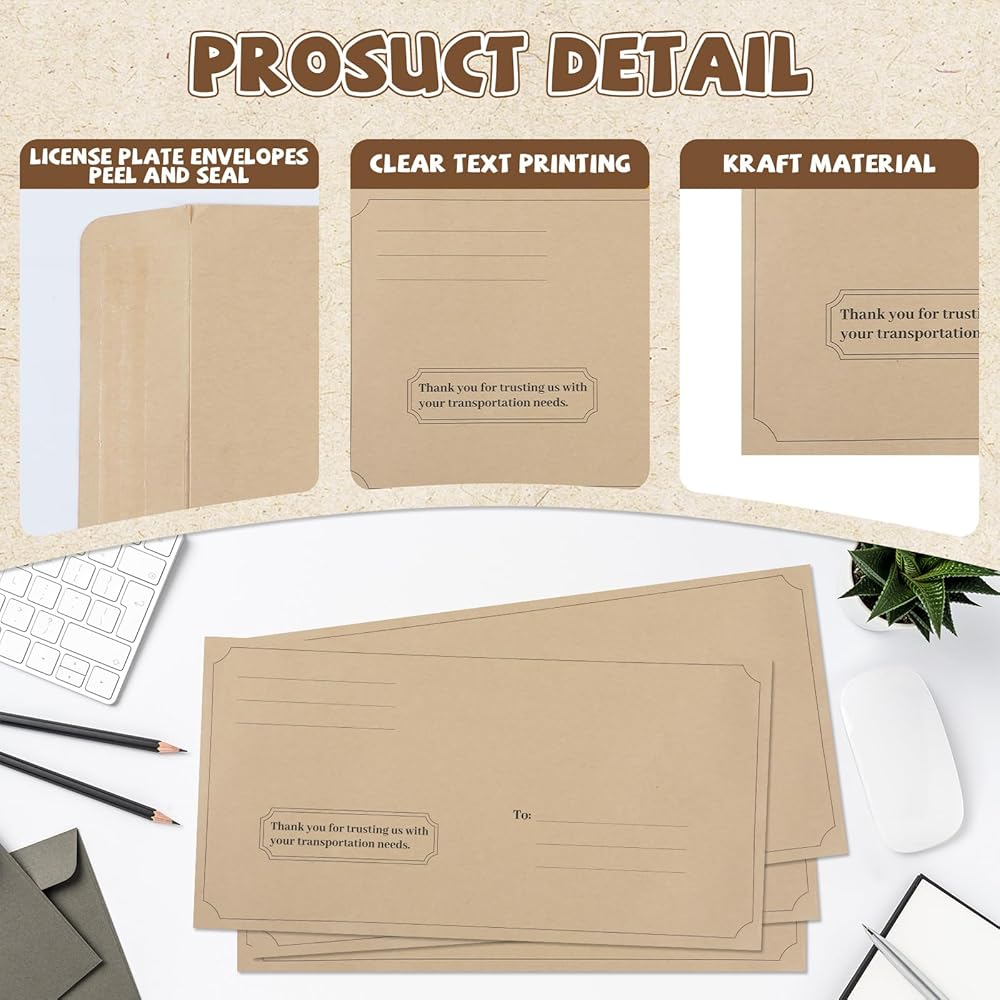 License Plate Envelopes Bulk: Come with 100 pieces license plate envelopes for dealership bulk needs and have a constant supply for your mailing needs, sufficient quantity for your all needs.