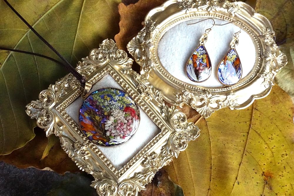 Production materials: forget-me-not flowers real dried flowers. Resin using drip technology. Alloy. No nickel and lead, comfortable and safe for anyone with skin allergies. All flower decorations are handmade, please note that they are slightly different from each other. Reflect the uniqueness.