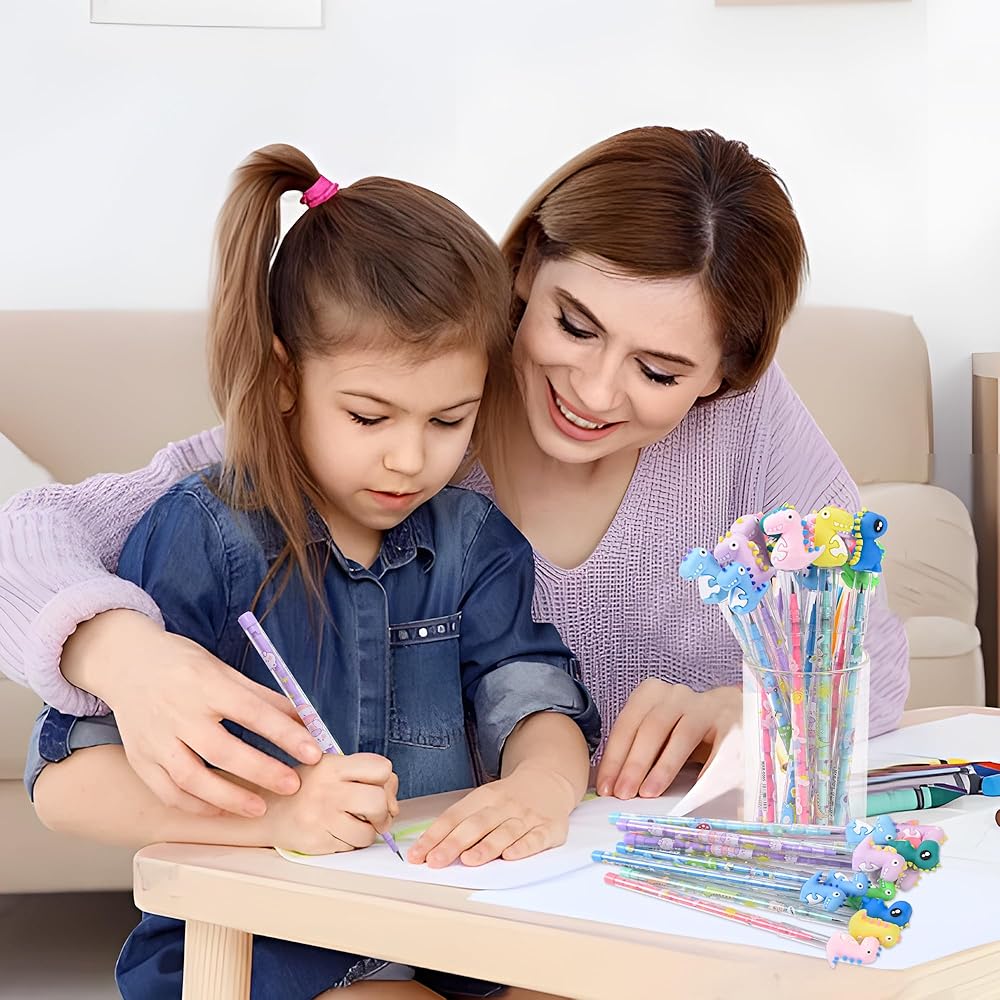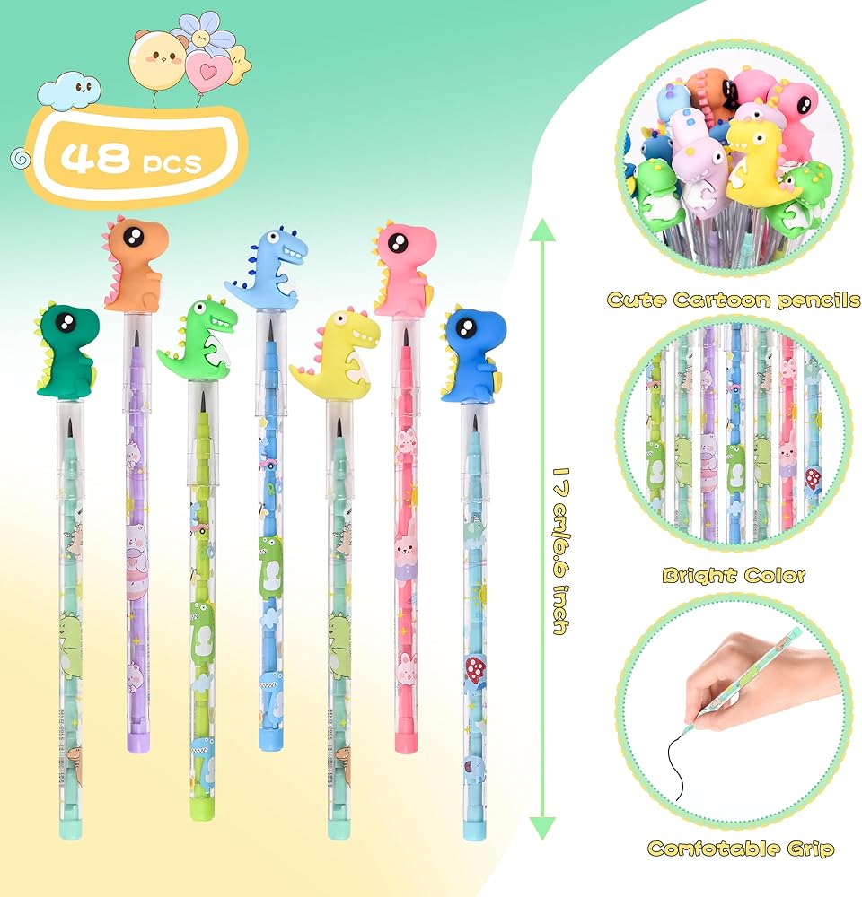 Innovative Design: These stackable pencils with cute pattern are ergonomic designs, are comfortable to grip for users, A variety of cartoon shapes and colorful designs range from cute and whimsical, making them fun, bright and exciting.