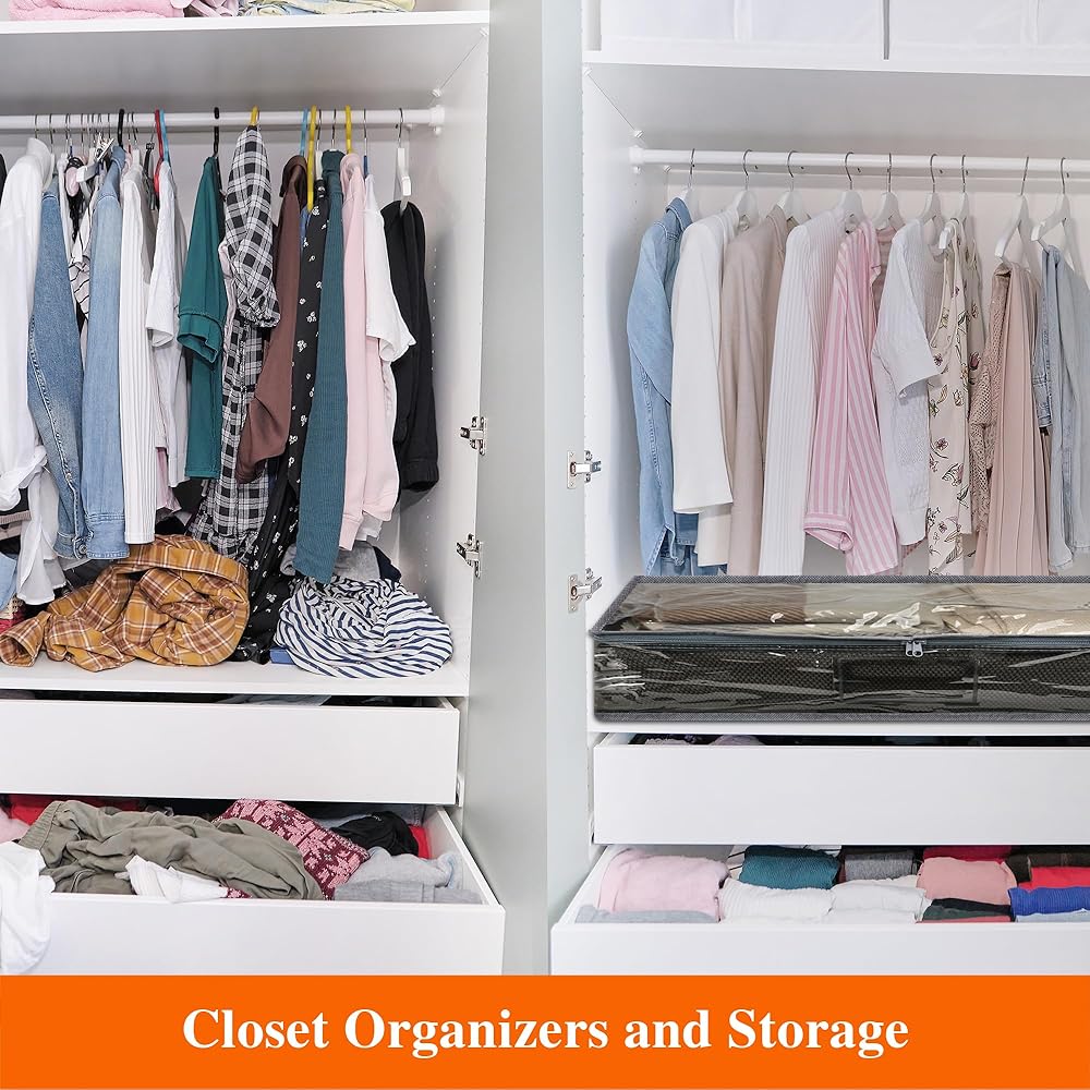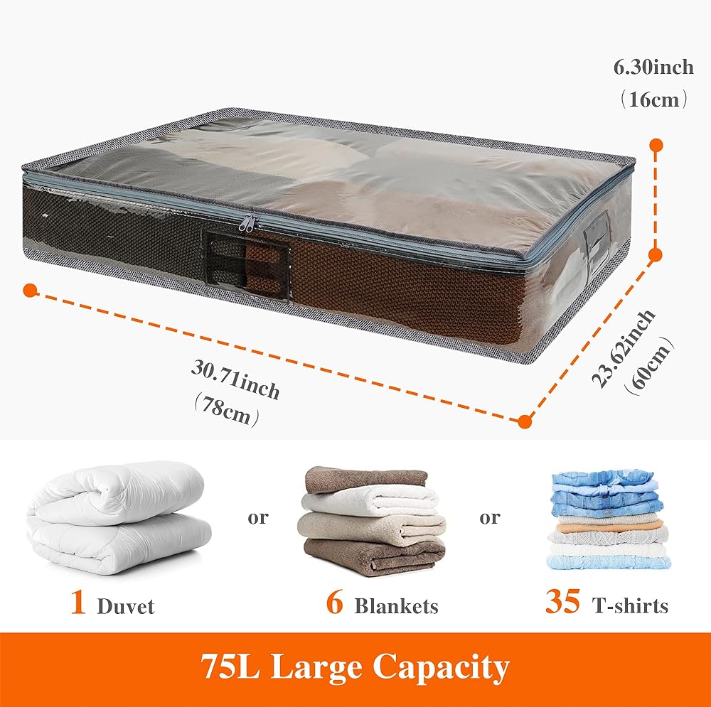 👍【Large Space】- Each storage container measures 40 x 20.x 6 inches / 100 x 50 x 15cm with 75L large capacity, fits perfectly under bed for storing your off season clothes, comforters, duvets, shoes, toys etc