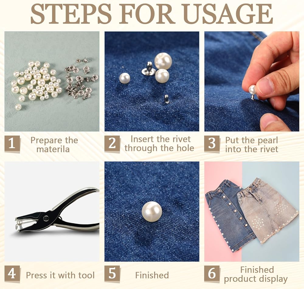 You can use pearl rivets for leather clothing to make handicrafts with your friends, enjoy the fun of DIY and enhance your relationship. They can not only be applied to decorate wedding dresses, bags, shoes, clothes or other items, but also DIY some beautiful handicrafts like hair clips, bracelets, earrings and so on.