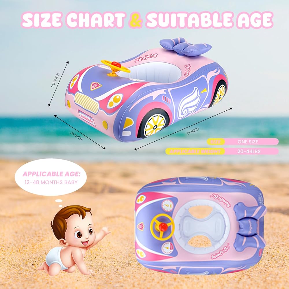 Baby Pool Float - Pool floats kids 3D car baby floatie made from durable, high-quality PVC, thickness of 0.35mm PVC material, Heavy duty and durable, others use 0.18mm or 0.20mm,0.25mm PVC. Our toddler pool floats are high quality for swimming and this baby float is built to last and withstand regular use
