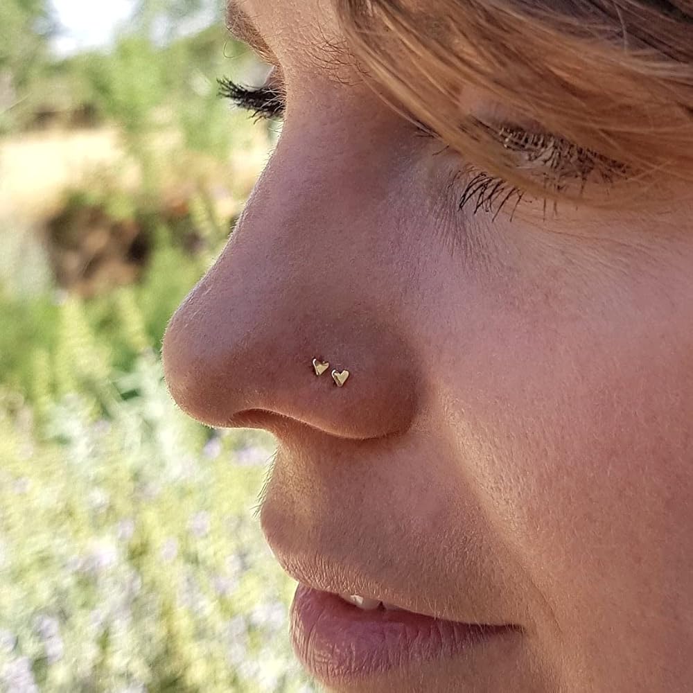 VERY TINY SINGLE EARRING - Unique Tiny Heart Solid 14K Gold Nose / Ear Piercing Stud - fits a variety of piercing locations. Gauge: 20g (0.8 mm). Screw pin shape.
