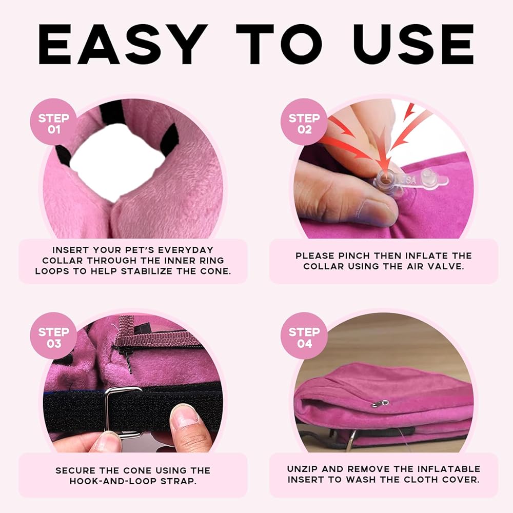 Inflatable Dog Cone Collar-Enhanced Anti-Licking Protective Cone with Adjustable Strap-Soft Dog Donut Collar Recovery Cone for Pets After Surgery (Pink, M)