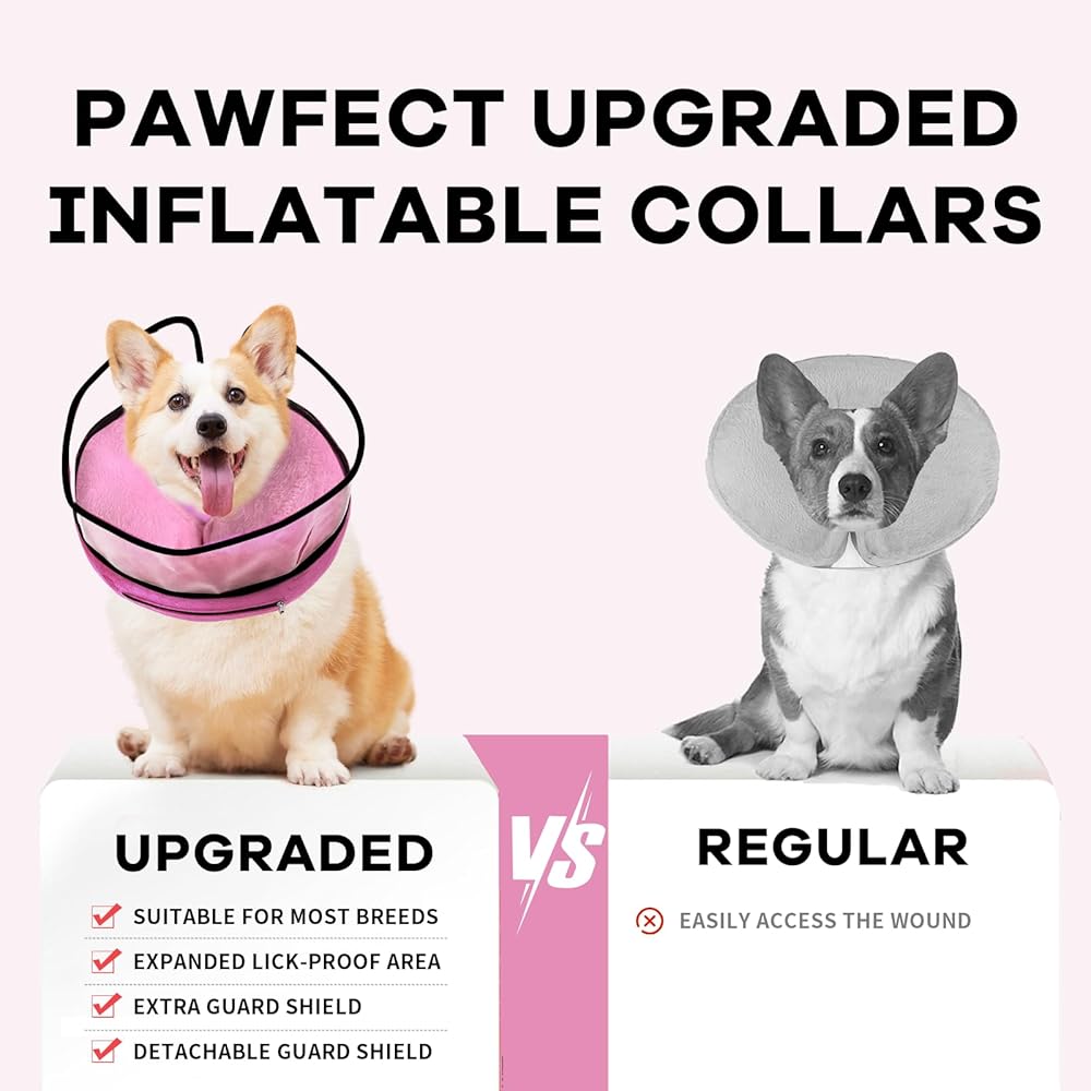 【Cone Alternative】This inflatable collar offers freedom of movement and clear visibility, unlike traditional cones. The anti-lick shield prevents access to wounds, reducing stress and discomfort while protecting your home from bumps. The materials we selected are meant for durable and long-lasting use., this lightweight cone doubles as a soft pillow. Perfect for post-surgery recovery, nail trims, or wound protection with superior comfort.