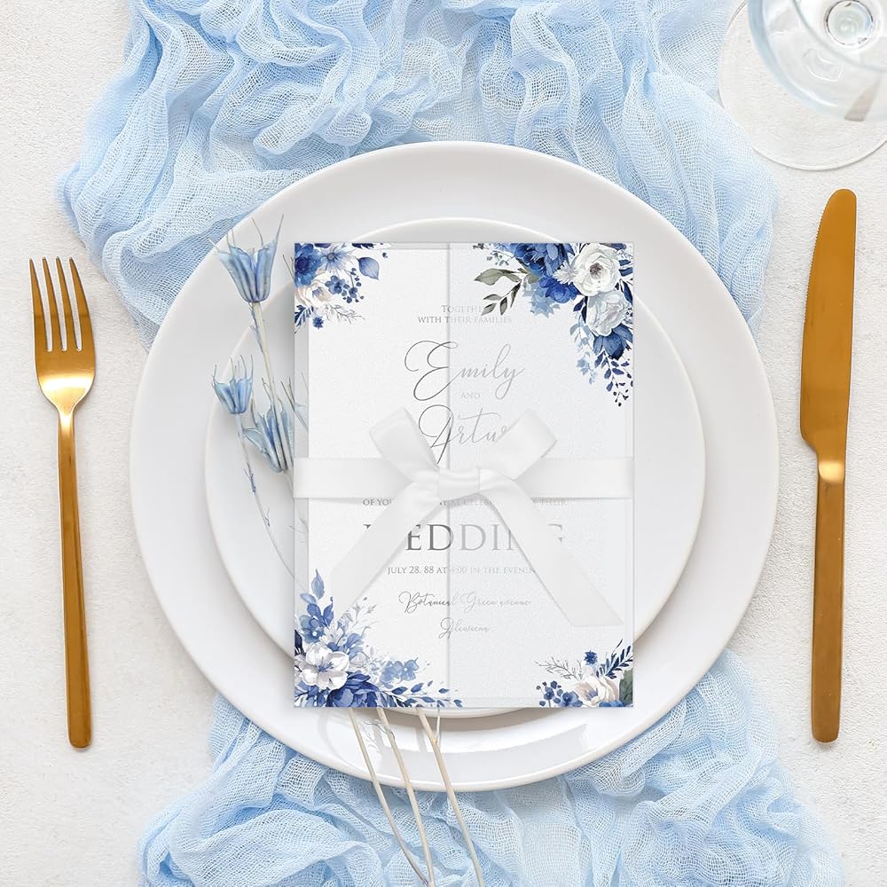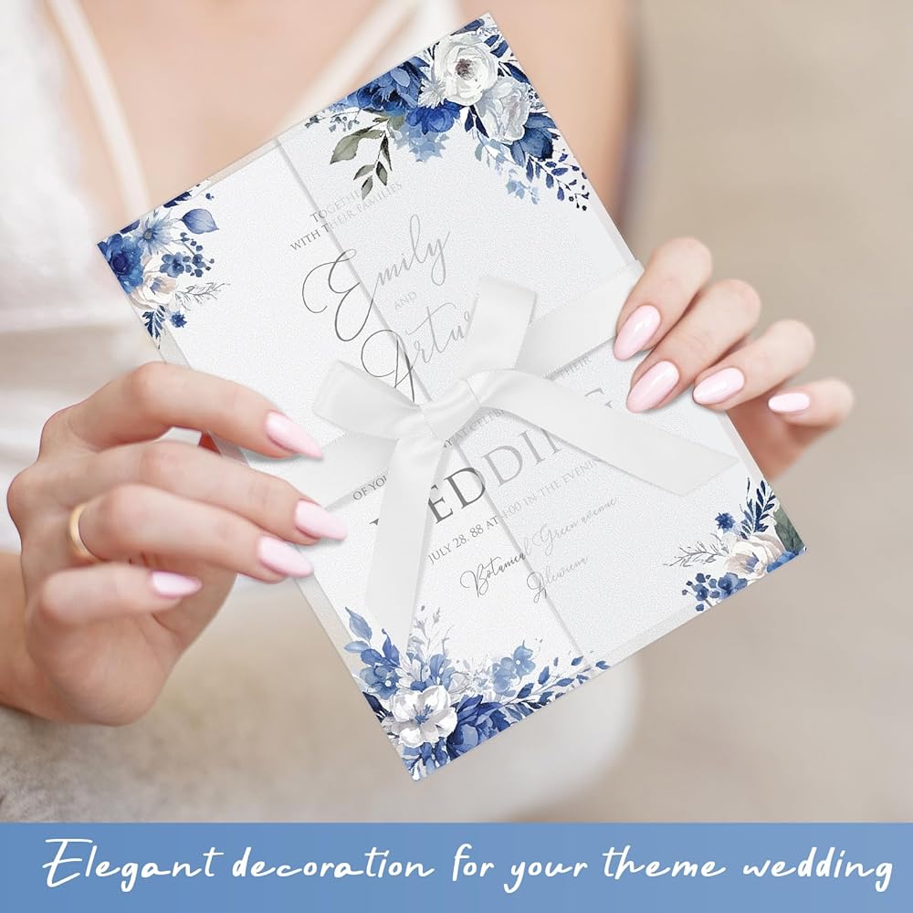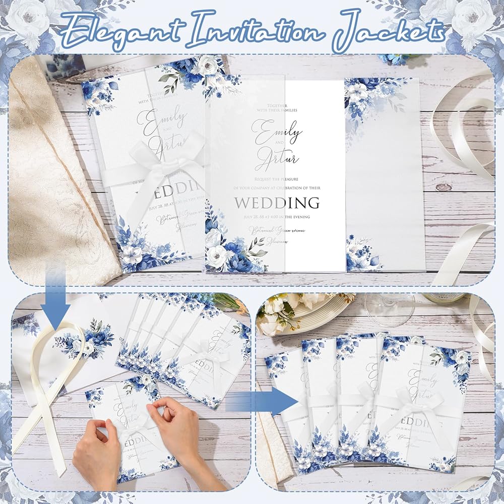 Easy to Use: these wildflower wedding vellum wrap for 5x7 invitations are pre folded to save you the work of packing, just insert your cards and photos and seal them to overlap, and your work is done, no need to fold the jackets yourself, saving time and energy