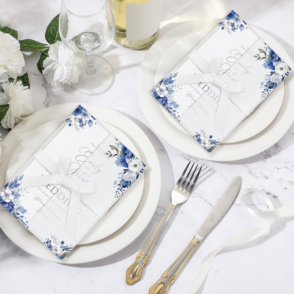 Wedding Invitation Accessories: the package includes 100 wildflower wedding pre folded vellum jackets for 5x7 invitations and 100 ribbons, which are made of quality 130GSM kraft paper, at the same time, the edges are chamfered to avoid scratches on your hands during batch processing; Please note that our products do not come with cards, the cards in the pictures are for display purposes only