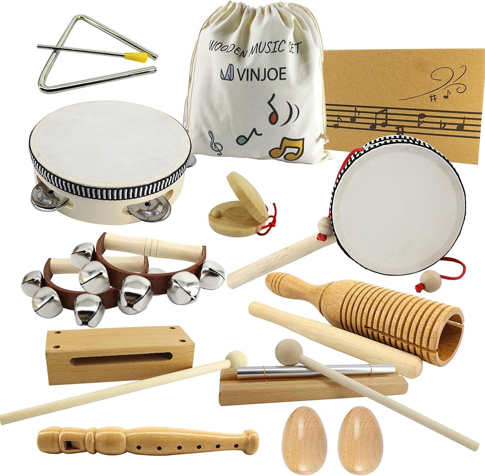 VINJOE Wooden Music Set–Kids Musical Instruments Toys, Natural Wood Percussion Instruments Toy for Kids Preschool Education Baby Musical Toys Instrument Set for Toddlers Best Gifts for Christmas