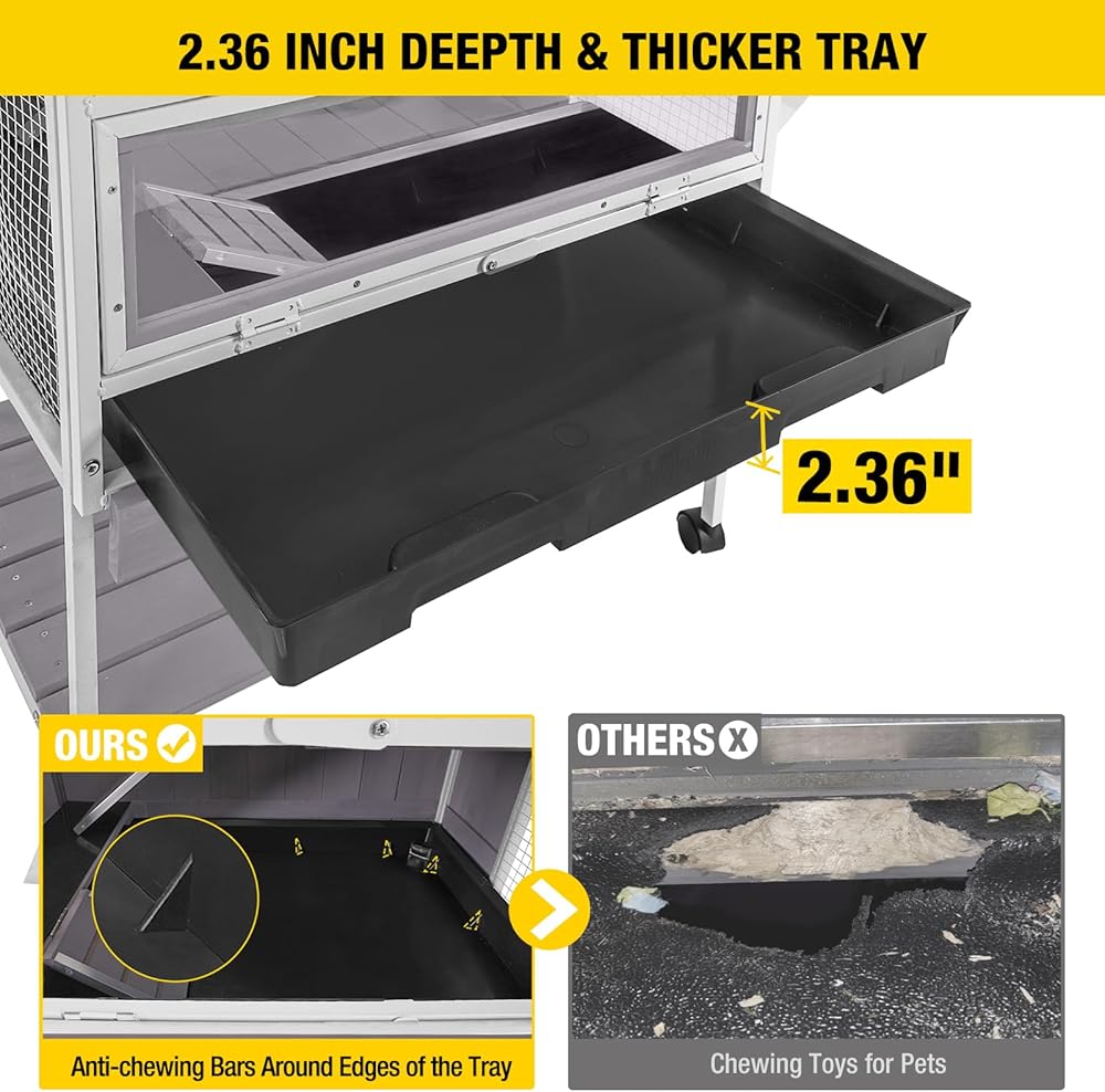 Mouse cage with DEEPER plastic tray,it will never leak or go mouldy.Wire side panel easy for the water bottle hang on.