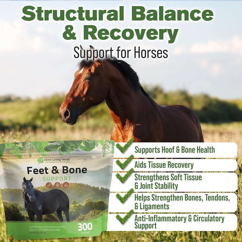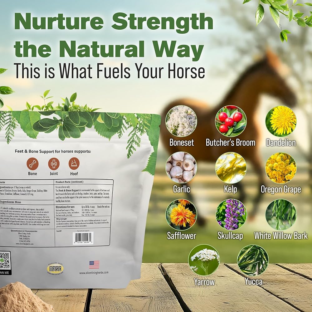 "No hoof, no horse." Truer words were never spoken. Feet And Bone Support is designed to support your horses structurally from the ground up, from maintaining healthy organized hoof growth, to supporting bones and hard tissue throughout the feet, legs, shoulders, hocks, spine and hips. This product may be beneficial for horses recovering from bone, tendon, ligament, and many other issues.