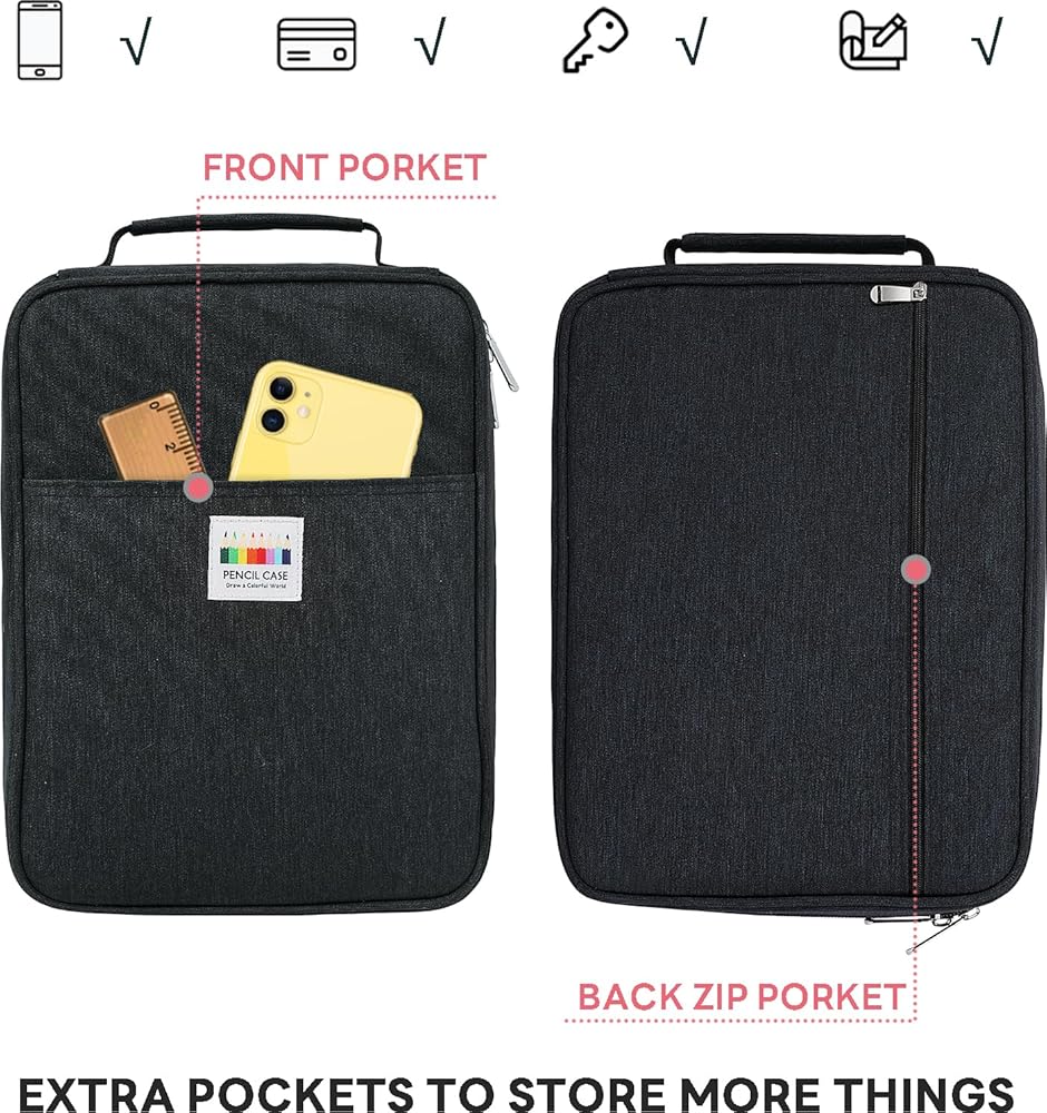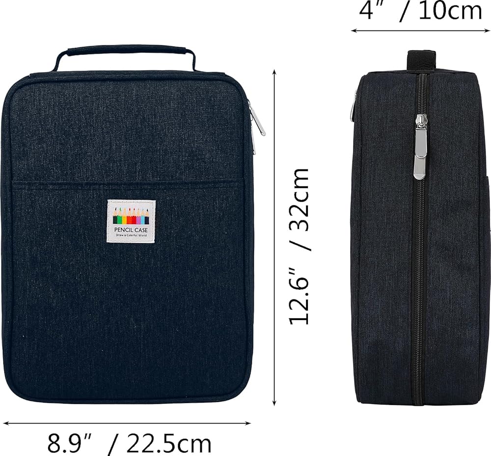 [Portable and Durable] Made of sturdy nylon material, this pencil bag is very durable and easy to clean. Waterproof and dustproof, along with a carrying handle, it's an ideal storage case for people on the go