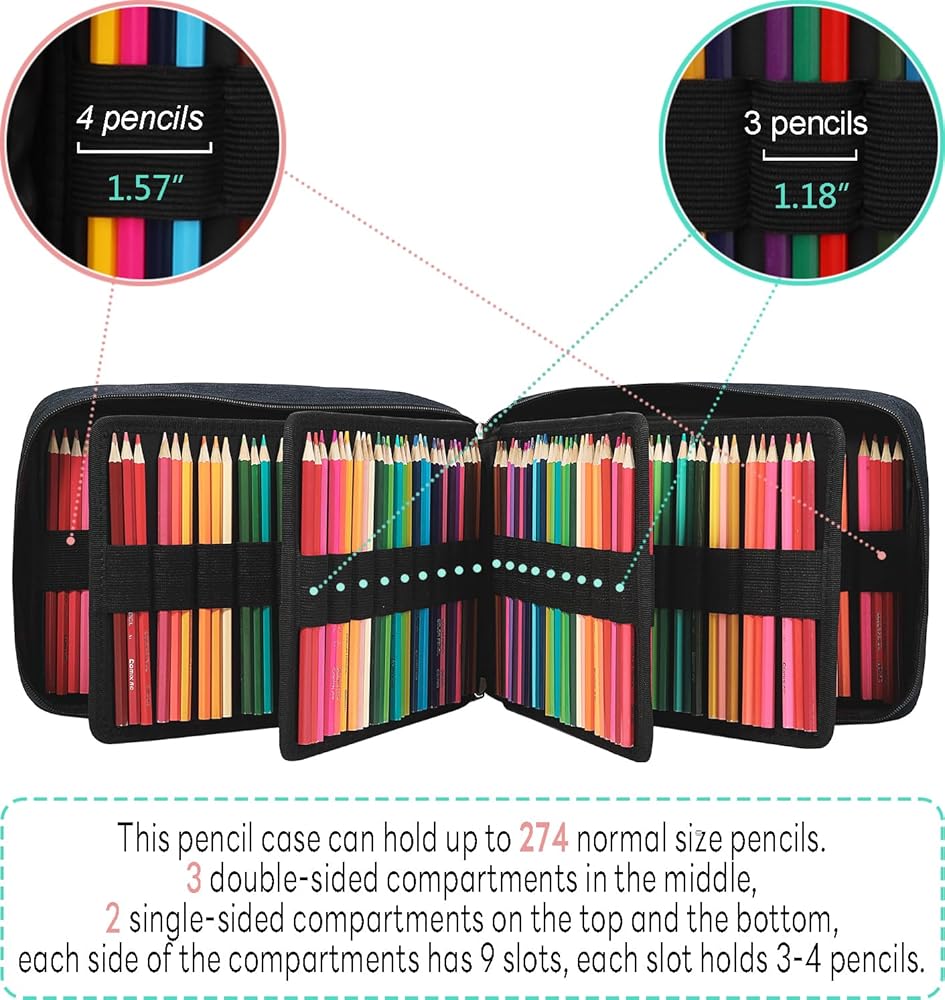 [Large Capacity] This pencil case can hold up to 274 normal size pencils with it's inside compartment