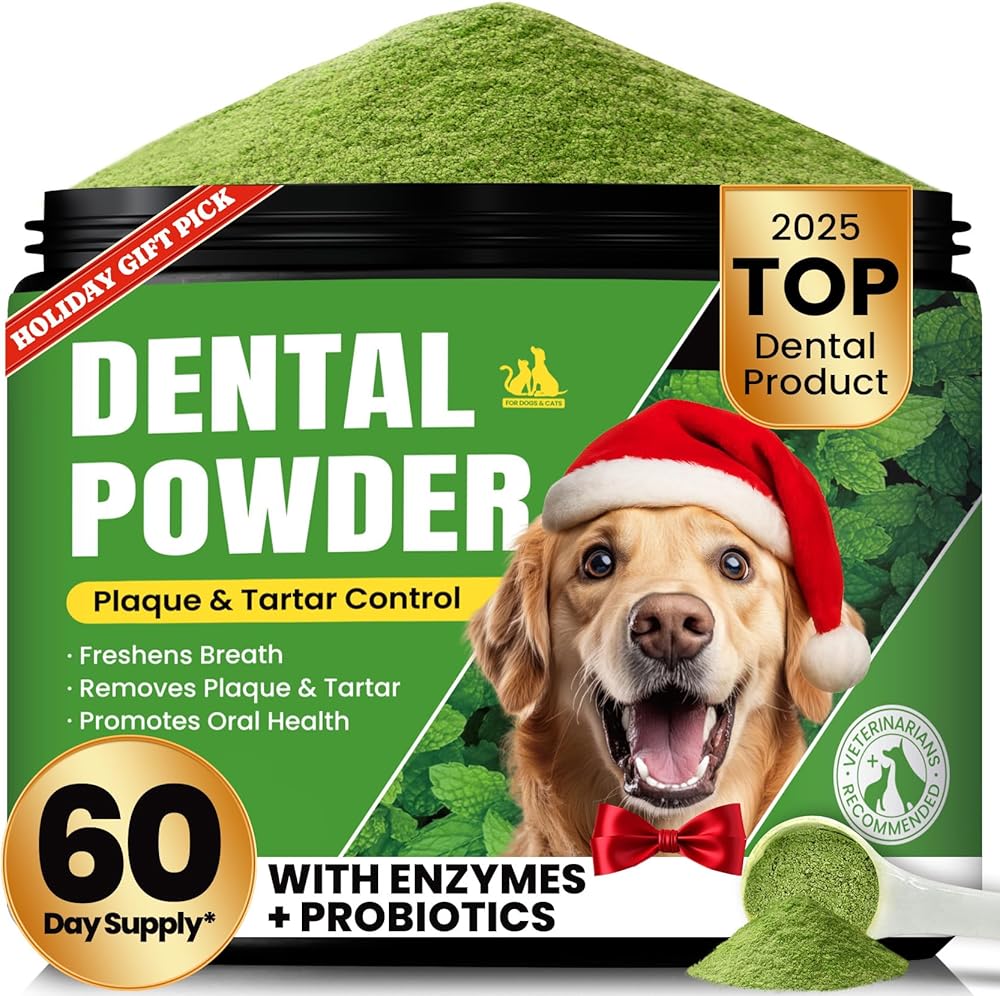 Dog Teeth Cleaning Powder, Dog Dental Powder and Cats Breath Freshener, Plaque Off Pet Tooth Cleaning lab co, Bad Breath & Tartar Remover for Dogs, Dog Teeth Cleaning with Enzymes- 60-Day Supply -Mint