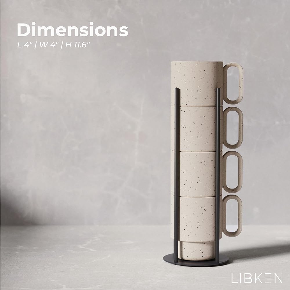 Space-Saving: Maximize your countertop space with our coffee mugs and metal rack set. The innovative design allows you to neatly stack the mugs, freeing up space for more items.