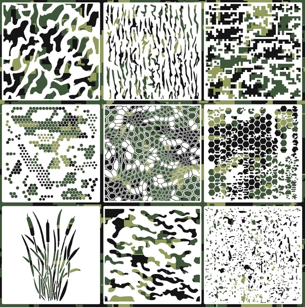 Camo Paint Stencils 12inch Camouflage Stencils Reusable Camo Stencil for Spray Paint Wood Canvas Paper Fabric Floor Wall Tile