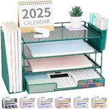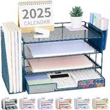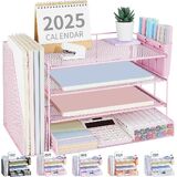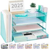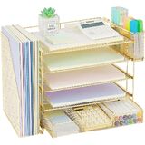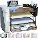【STRONG & STYLISH DESIGN】Crafted with quality wood and mesh metal, our paper organizer for desk ensures stability. Sleek design enhances workspace aesthetics, making you feel happy. Perfect for desk organization and office organization and storage.