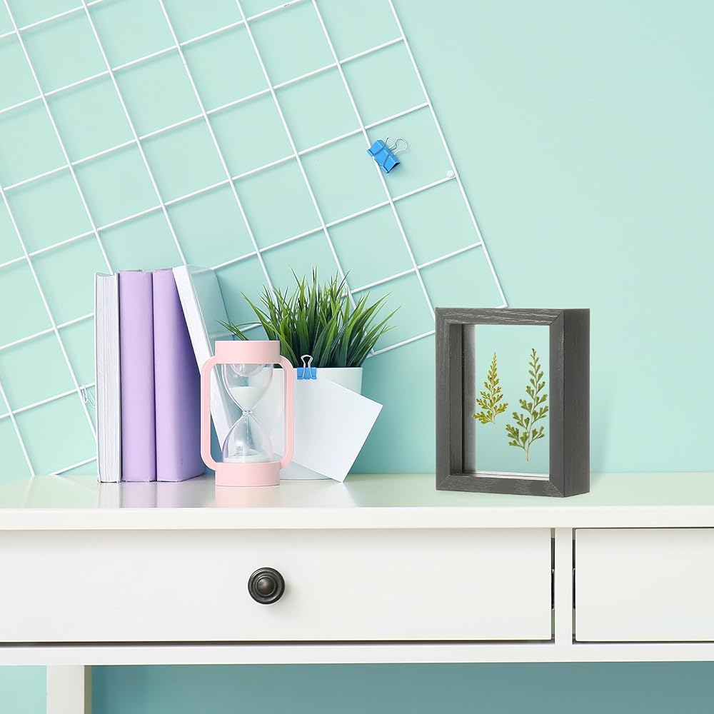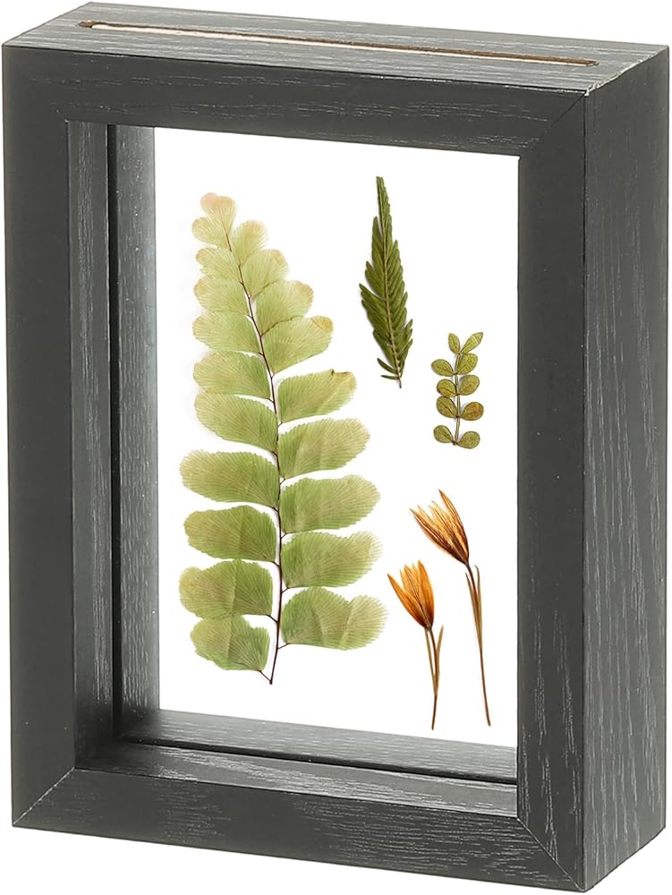 Dried flower frame: This picture frame features a sleek brown wood color wood frame and double panel HD glass, creating an elegant and minimalist aesthetic with a touch of luxury. The outer frame size is 21.5 cm x 26 cm / 8.5 x 10.2 inch, the inner frame size is 19 cm x 23.5 cm / 7.5 x 9.3 inch, and the frame thickness is 4 cm / 1.6 inch. Please confirm whether it is the right size for your artwork.