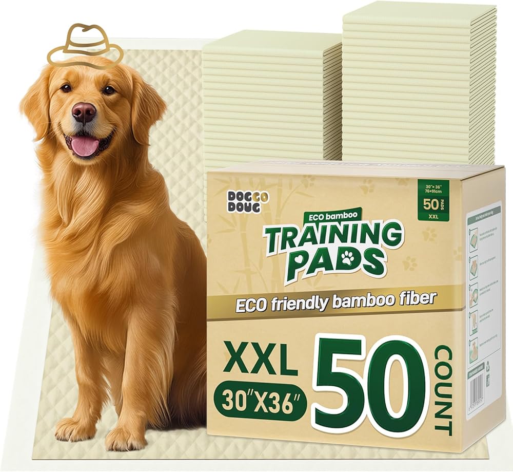 Puppy Pads 50 Count 30"x36" Pee Pads for Dogs Deodorizing Leakproof Quick Drying Dog Pee Pads Super Absorbent Disposable Bamboo Training Pads with Adhesive Tabs
