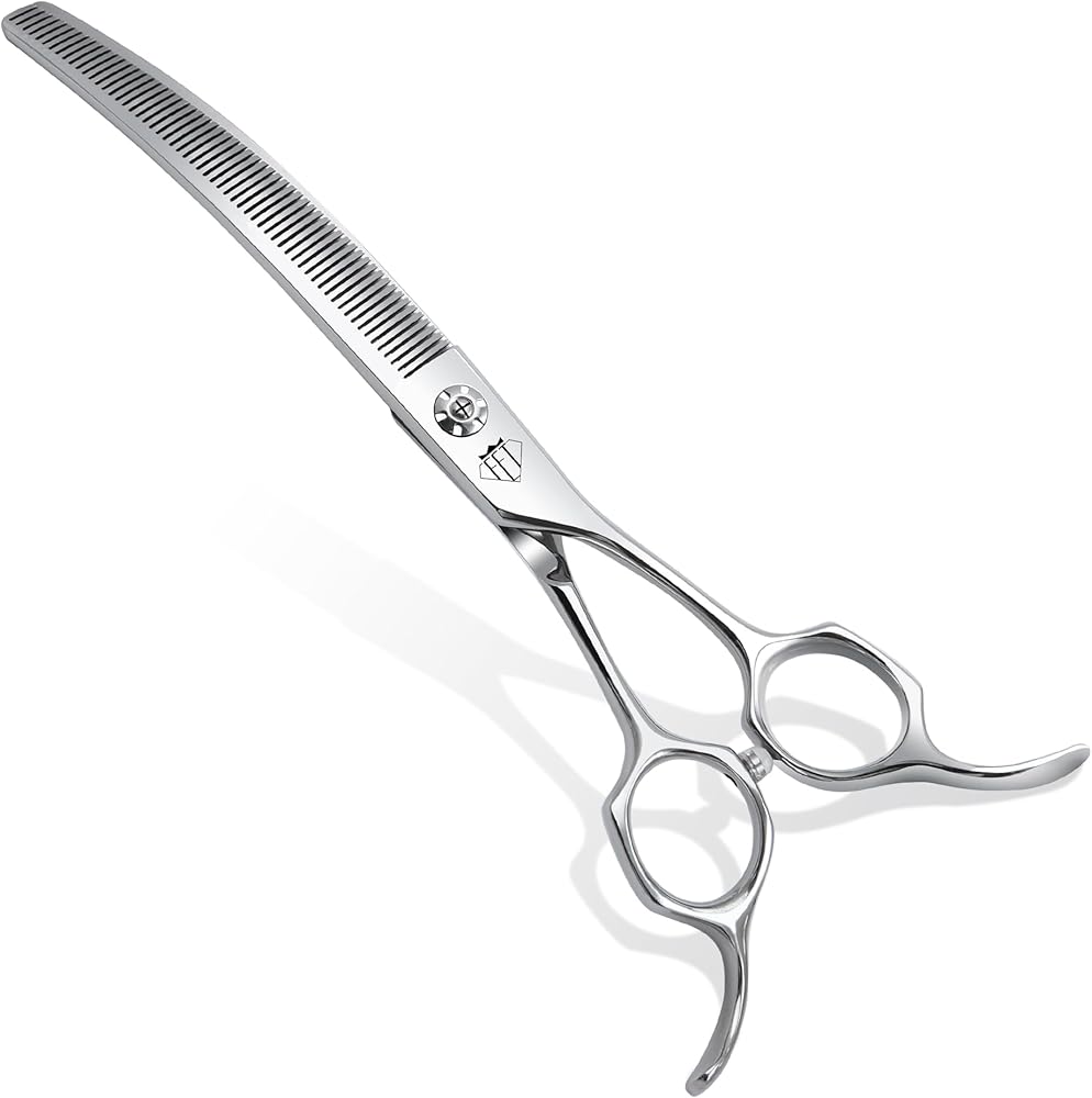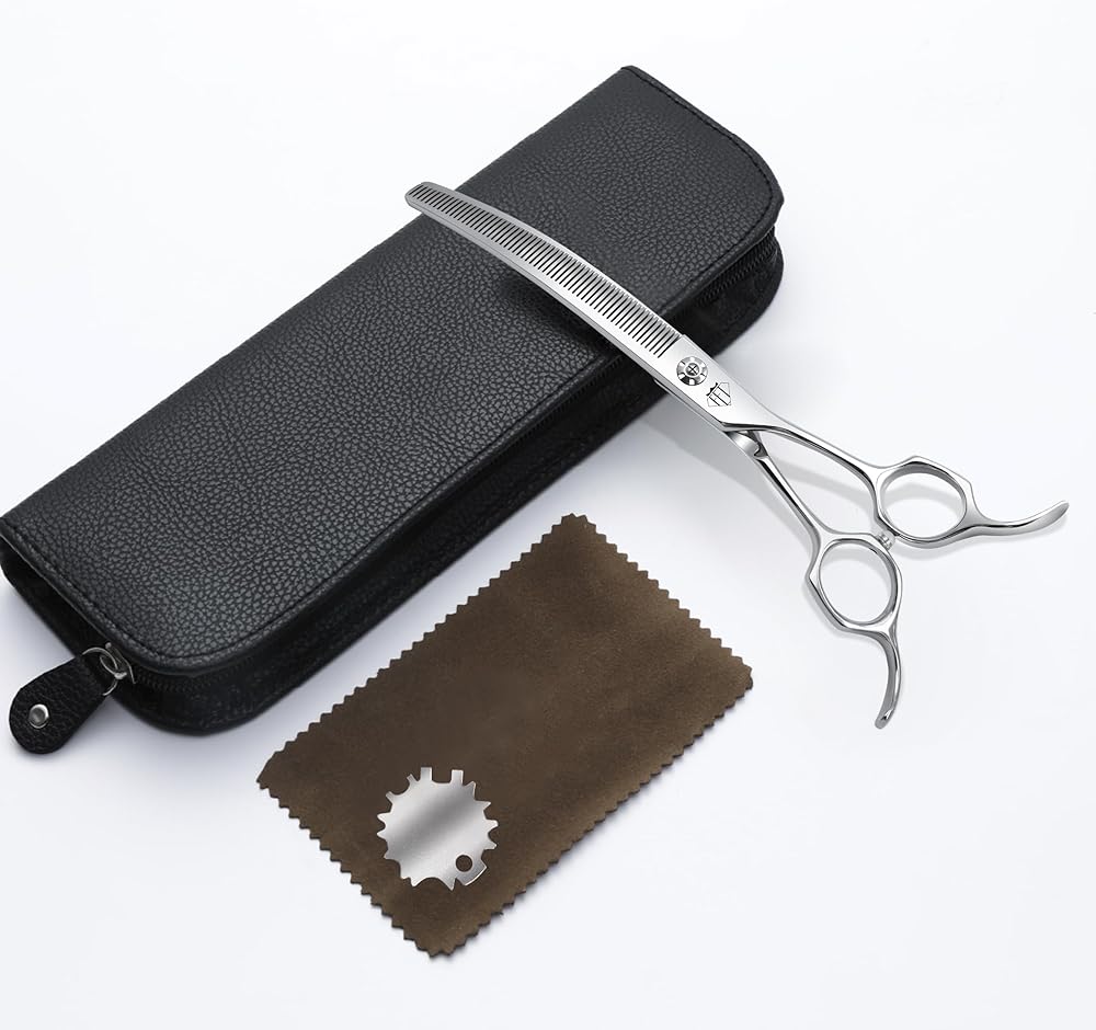CURVED DESIGN: Professional-grade thinning scissors featuring a 30-degree curved blade for precise grooming and enhanced control