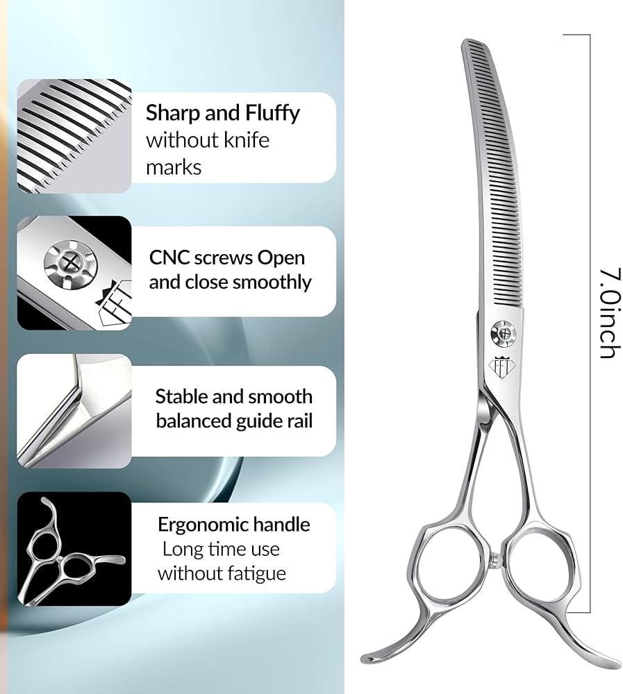 Professional Curved Thinning Scissors for Dog Grooming, 30-Degree Curvature, Japanese 440C for Trimming Dogs Cats and Other Pets face and paws (Curved Thinner)