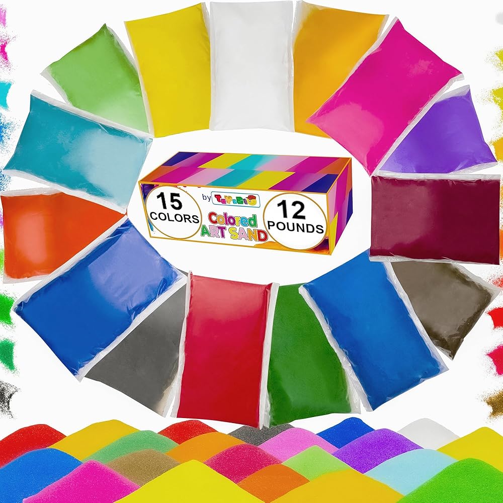 Colored Sand for Sand Art [15 Colors: 12 lbs], Colored Sands Bulk, Delightful Sands Art Fun for Crafts, Parties, Children, Nice Colorful Fun Sandy Crafts for Kids Age 3+, Non-Toxic, 15 Bags