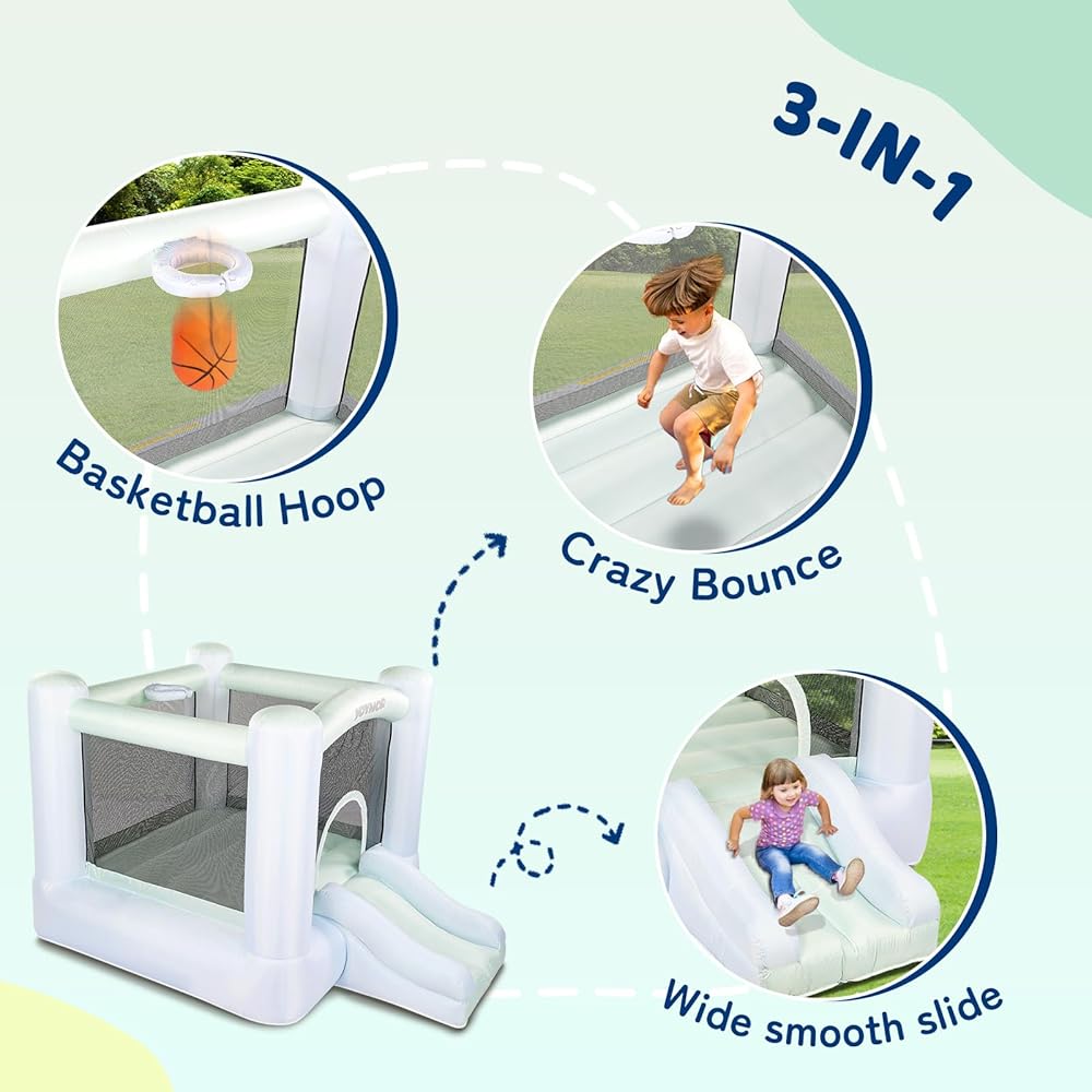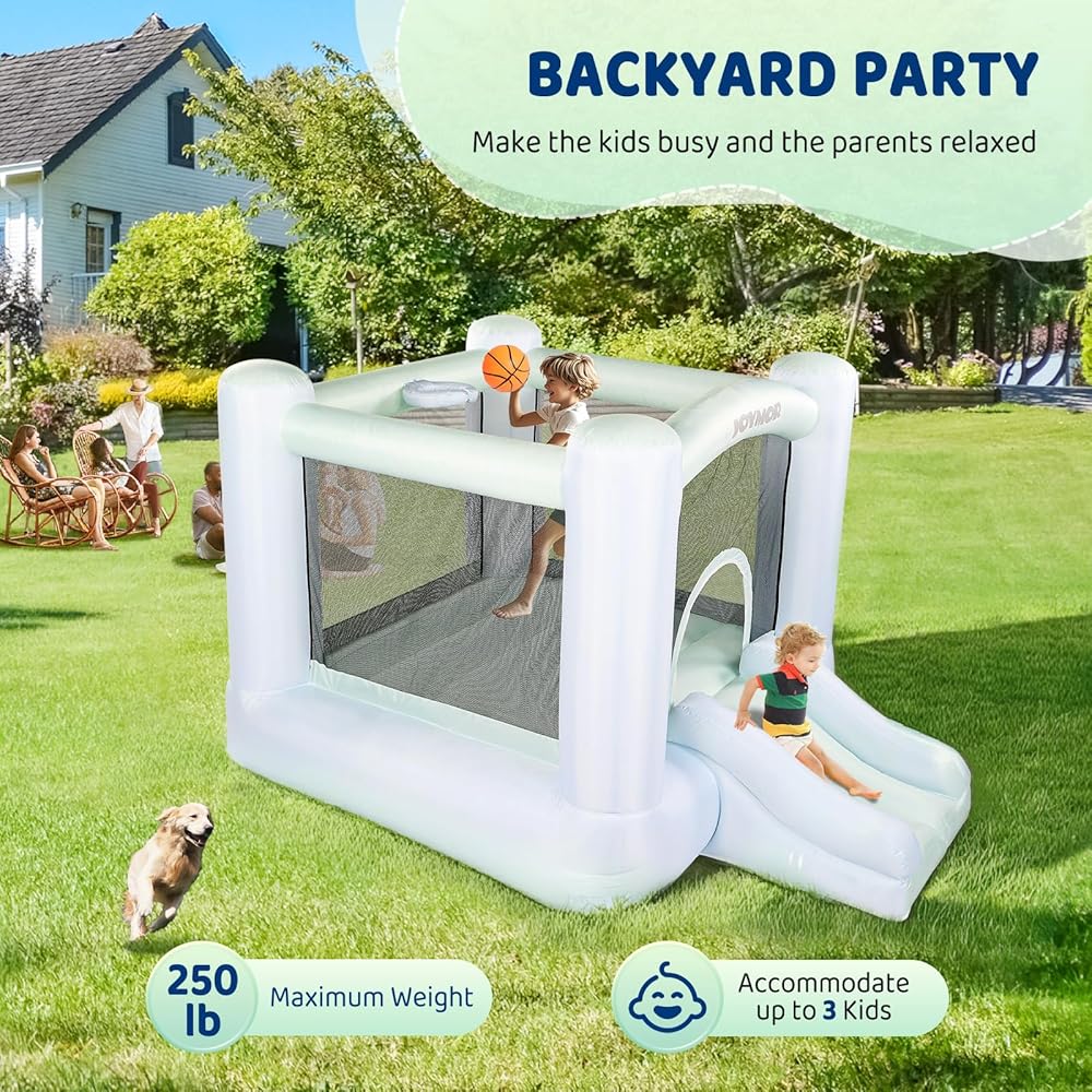 JOYMOR Gradient Style 3-in-1 Bounce House for Ages 3-6 with Basketball Hoop & Slide, 30s Quick Inflatable Bouncer with Blower for Indoor & Outdoor Party